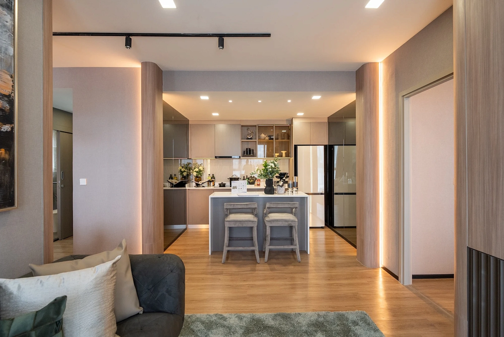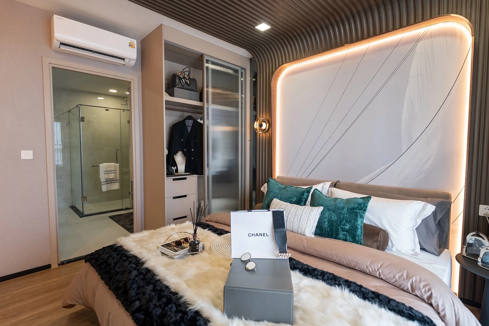 Апартаменты предоставляются с чистовой отделкой, встроенной мебелью, сантехникой, кондиционерами, шторами.
