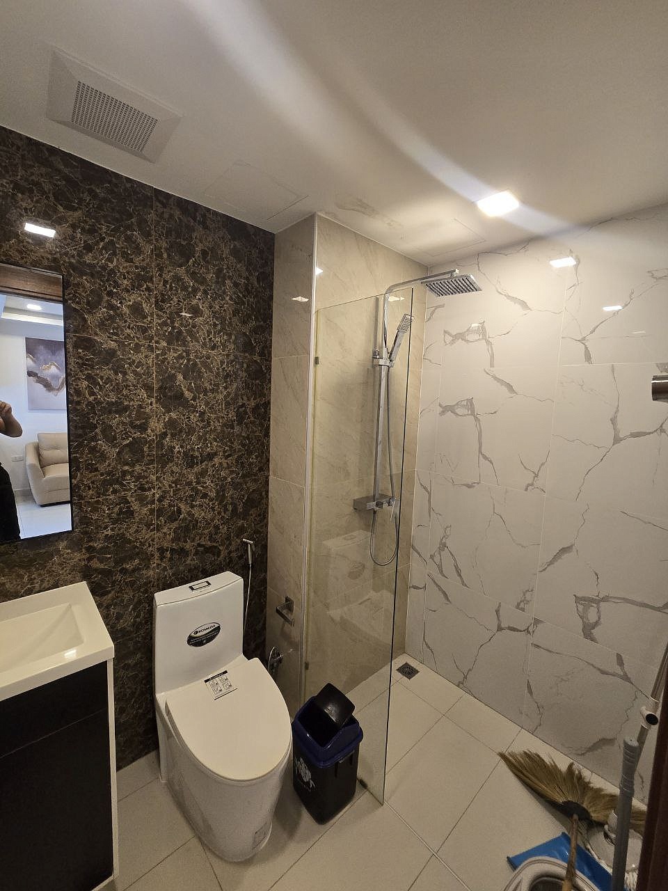 - Современная отделка: ламинат, керамическая плитка