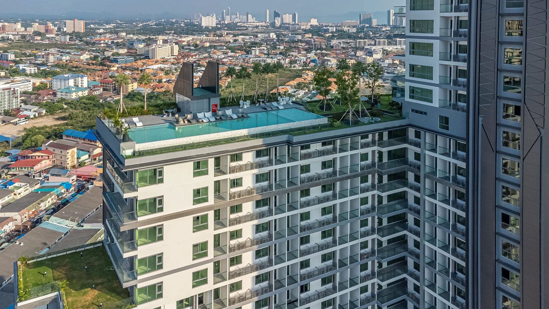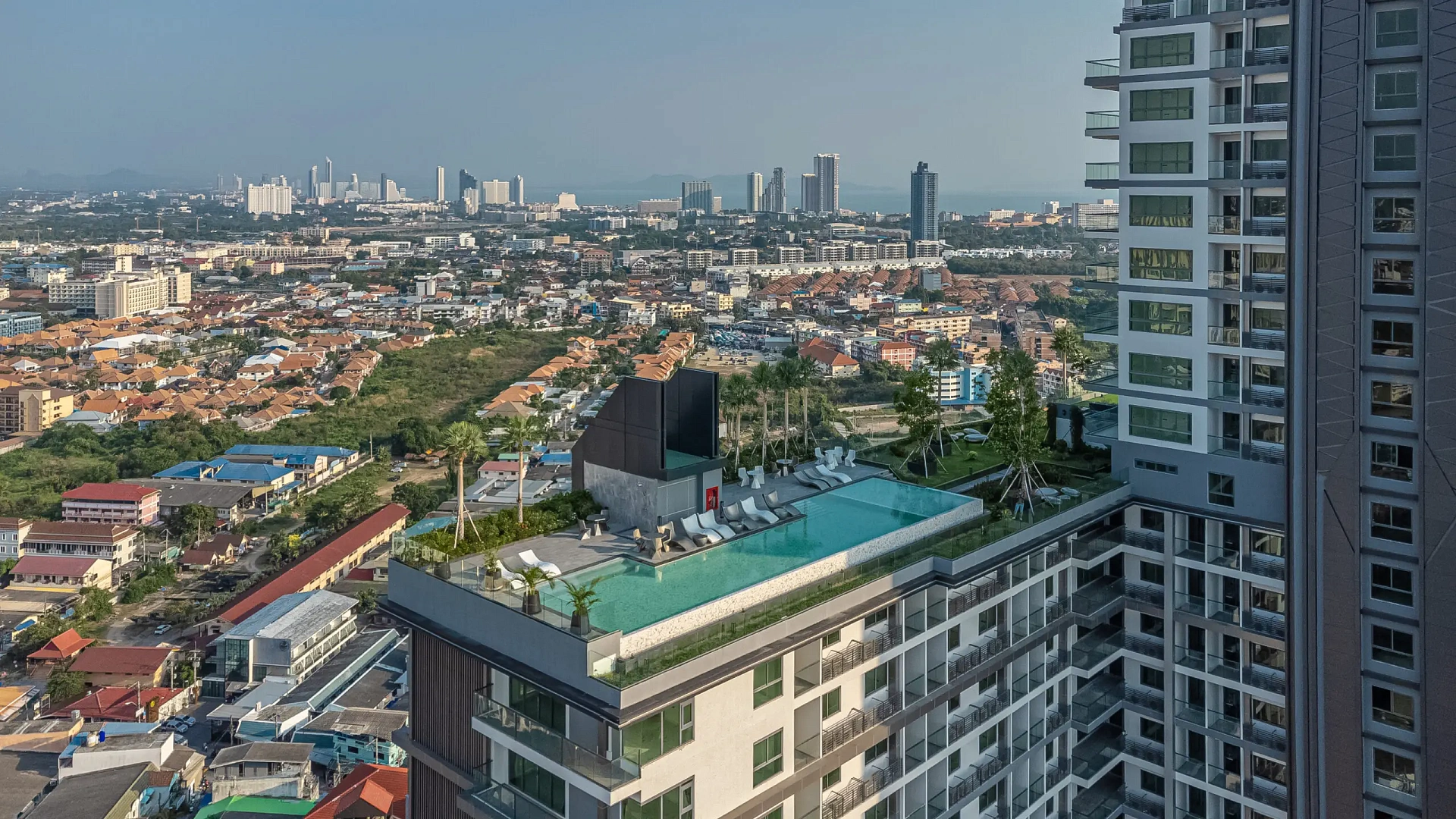 - Панорамные виды: Бассейн и зона отдыха на крыше с 270-градусным видом на Паттайский залив и остров Ко Лан, дополненные современным дизайном интерьеров.