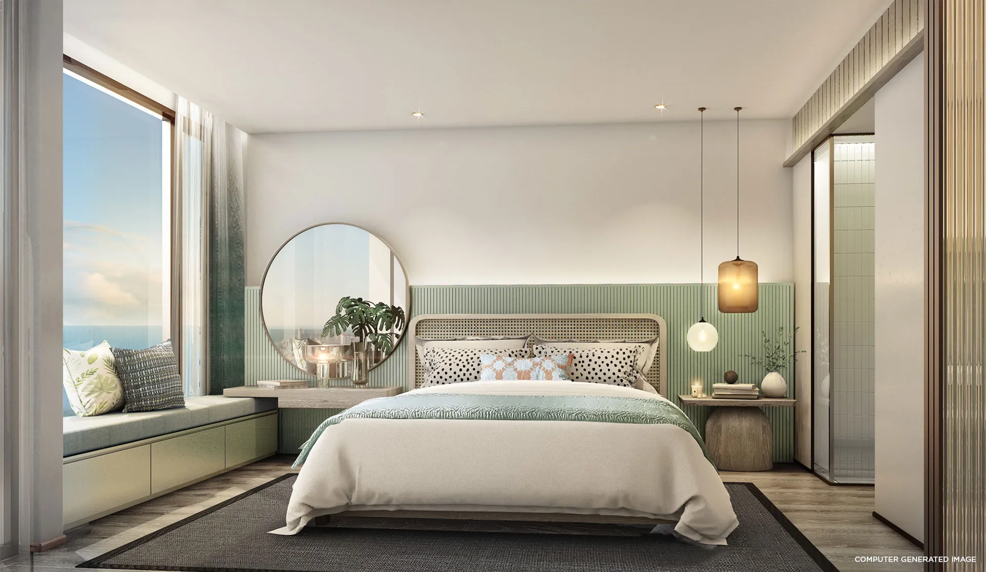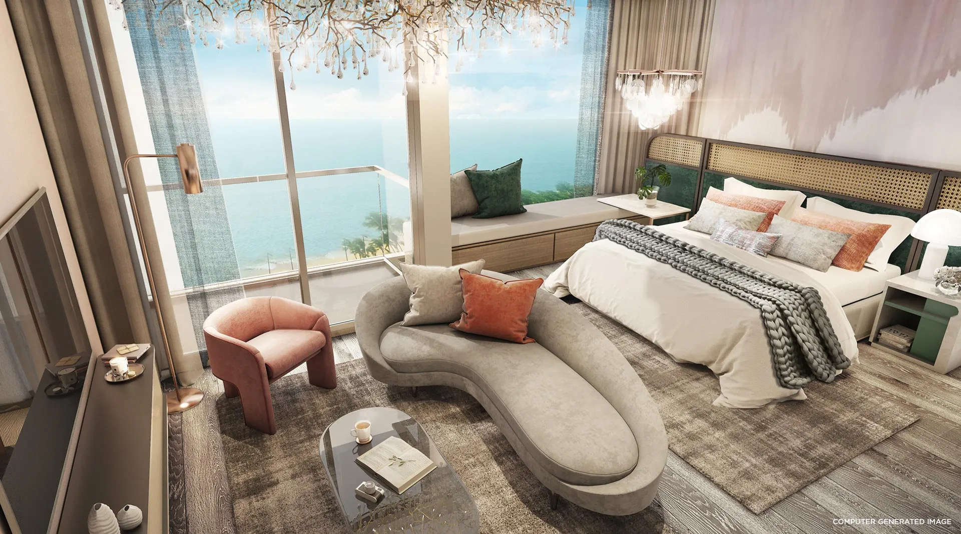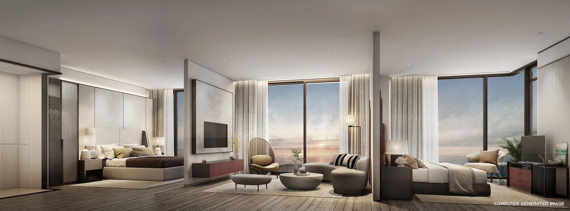 - Элегантный дизайн: Полностью меблированные апартаменты с интерьерами от PIA INTERIOR Co., Ltd., вдохновленные природной эстетикой, с акцентом на комфорт и современные технологии.