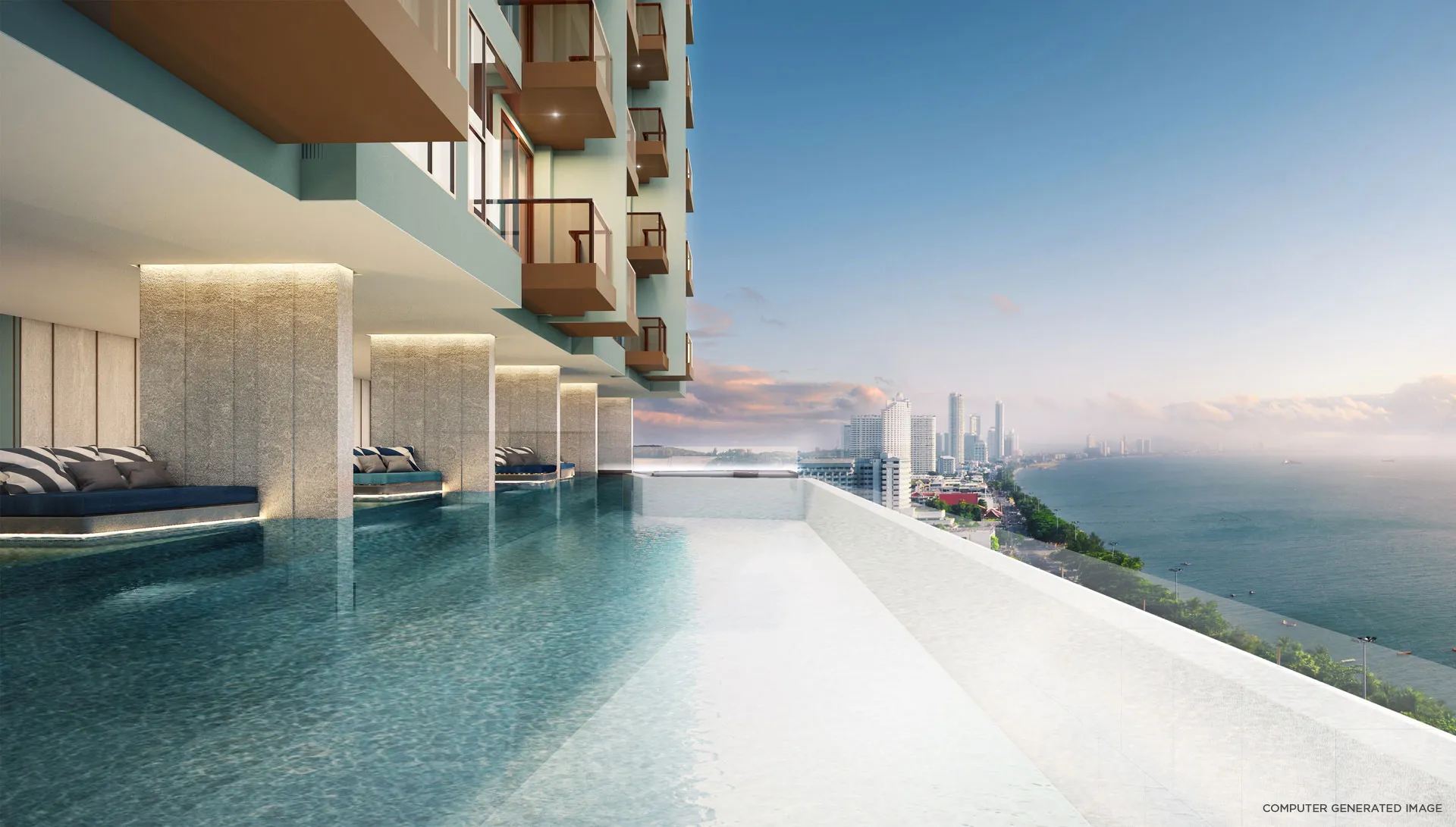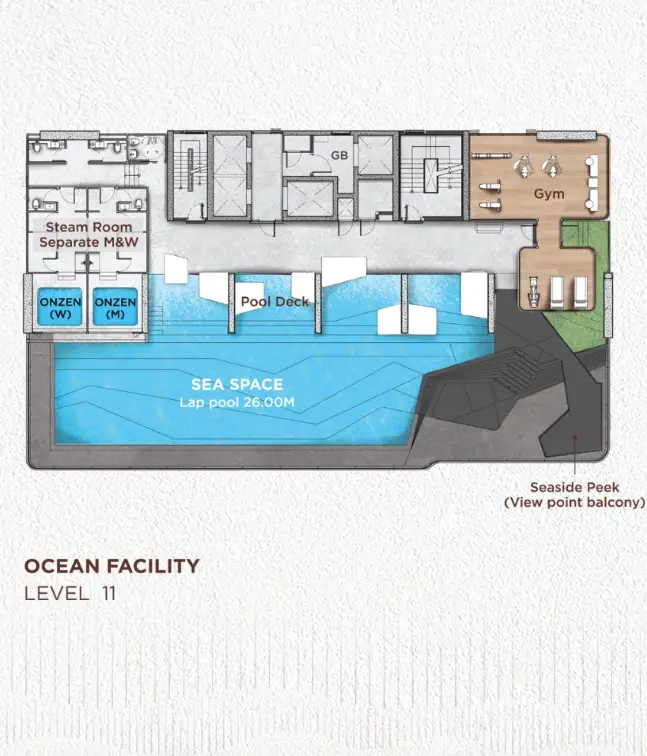 - Премиальные удобства: Инфинити-бассейн на крыше с панорамным видом на океан, спа и онсен, фитнес-центр, лаундж-зоны и тропический сад для отдыха и активного образа жизни.