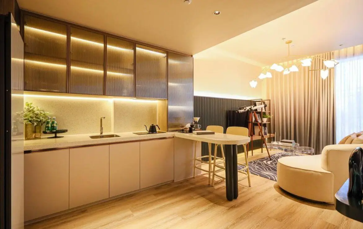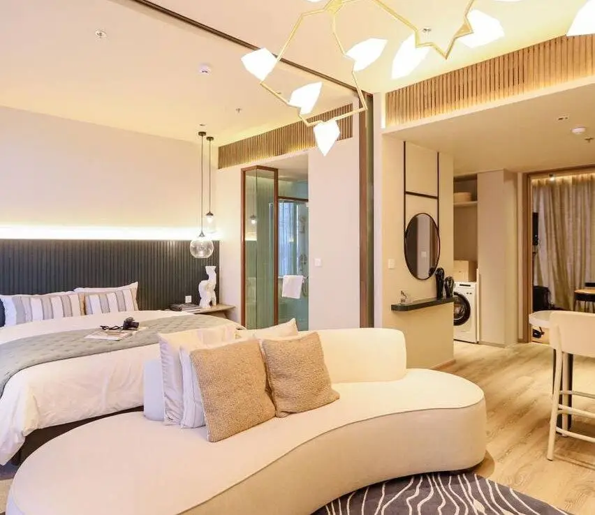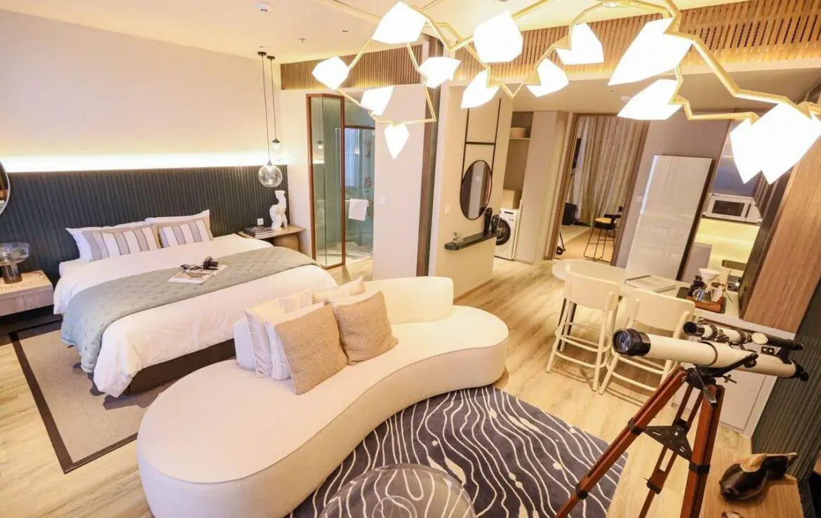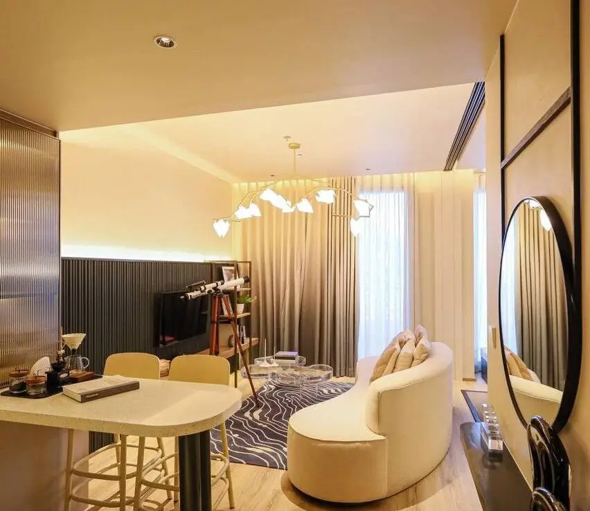 - Элегантный дизайн: Полностью меблированные апартаменты с интерьерами от PIA INTERIOR Co., Ltd., вдохновленные природной эстетикой, с акцентом на комфорт и современные технологии.