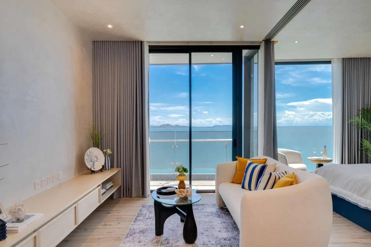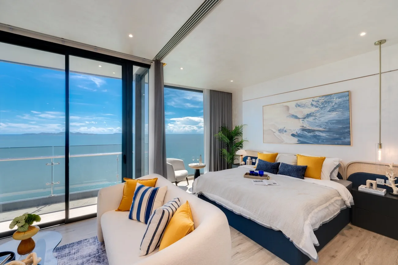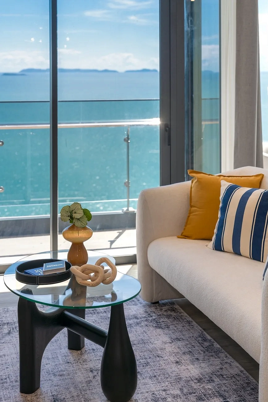 - Вид на море из каждой квартиры: Все окна комплекса ориентированы на Сиамский залив, обеспечивая круглосуточный доступ к панорамным морским видам, что делает каждую квартиру уникальной.