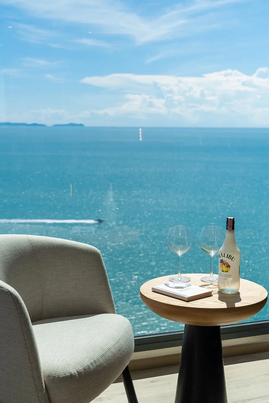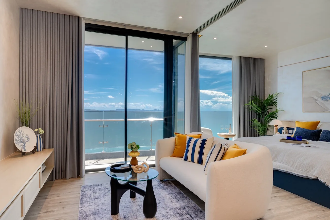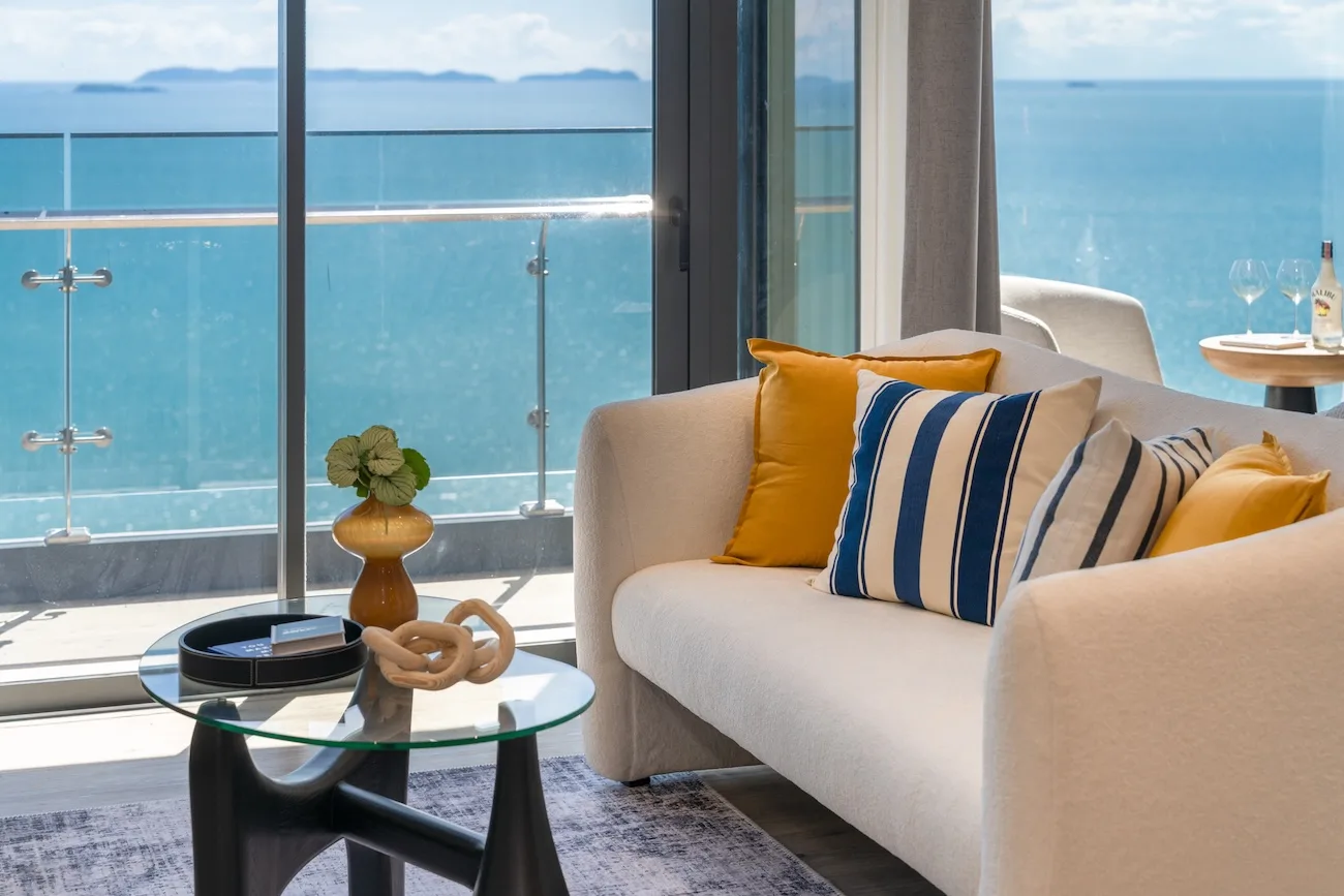 - Вид на море из каждой квартиры: Все окна комплекса ориентированы на Сиамский залив, обеспечивая круглосуточный доступ к панорамным морским видам, что делает каждую квартиру уникальной.