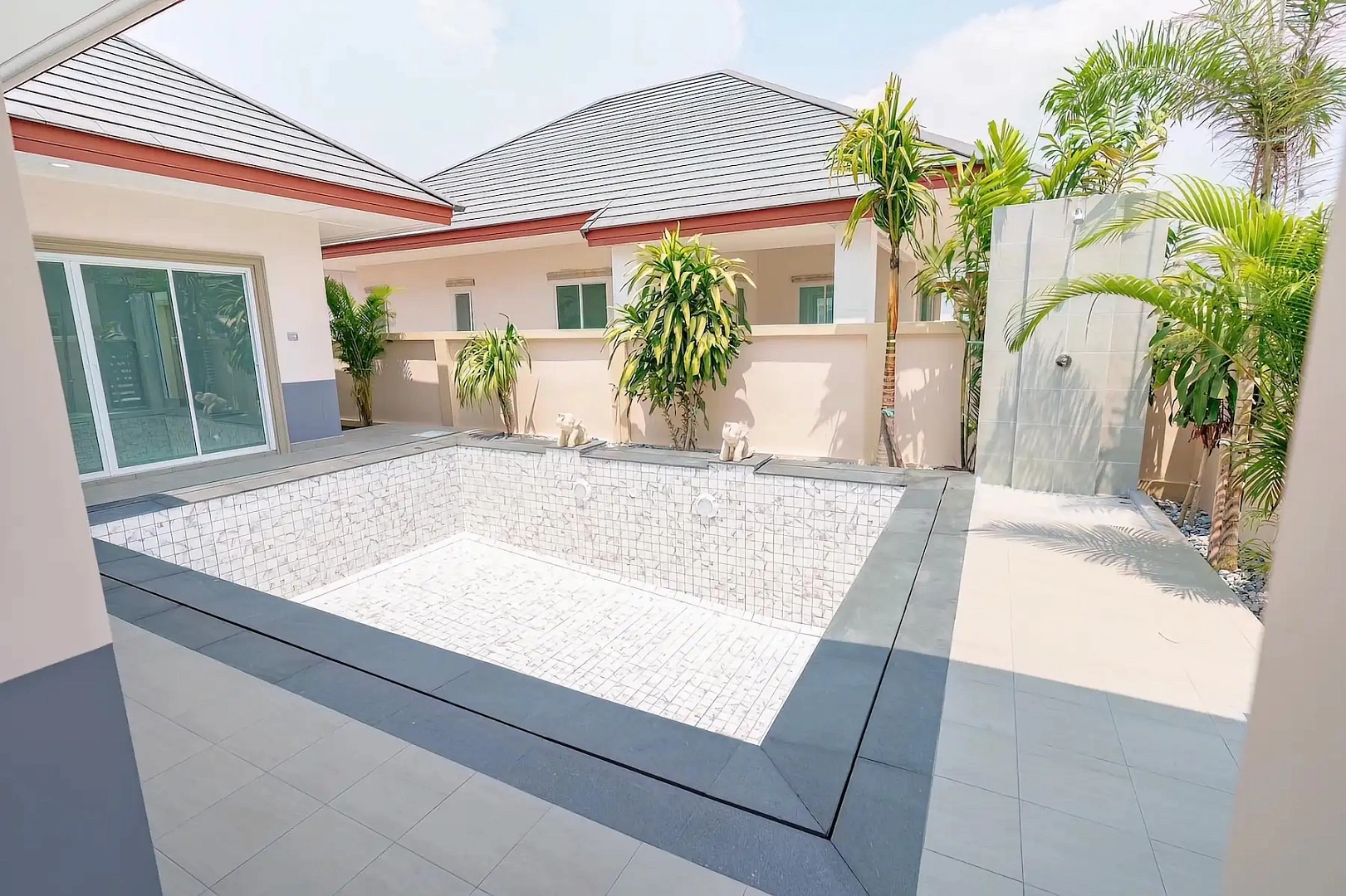 - Современная инфраструктура: Частные бассейны, тренажёрный зал, тропические сады, парковка на 2 автомобиля и круглосуточная охрана с видеонаблюдением.