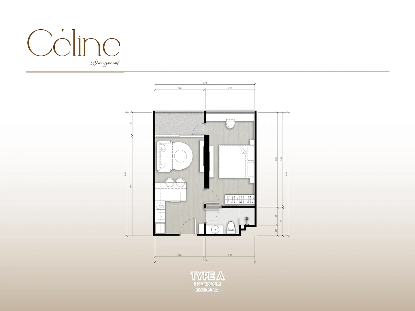 О квартире Celine Wongamat - A/A+ апартаменты с 1 спальней, 40-41,4 м²