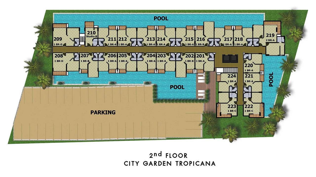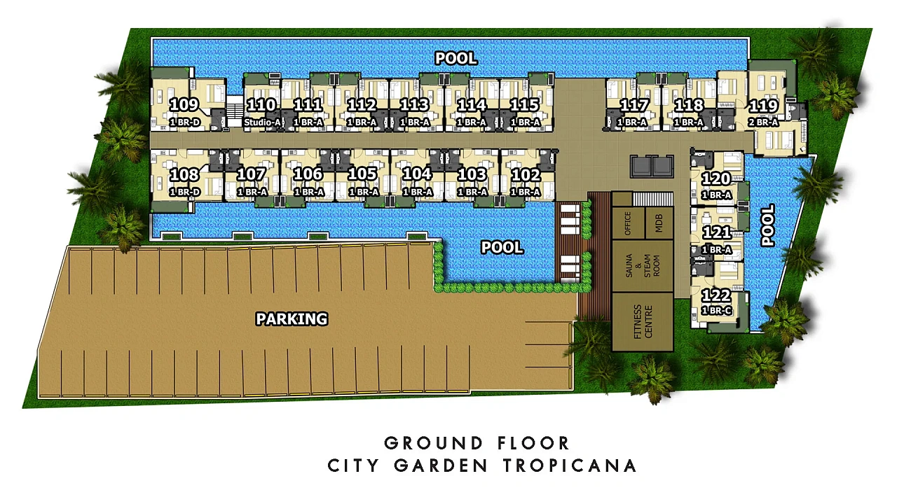 City Garden Tropicana — это невероятно уютный, стильный 8-этажный бутик-кондоминиум класса комфорт (всего 188 квартир), спрятанный в тишине престижного зеленого района Вонгамат (Северная Паттайя). Это 100% готовое качественное жилье для размеренной тропической жизни. -