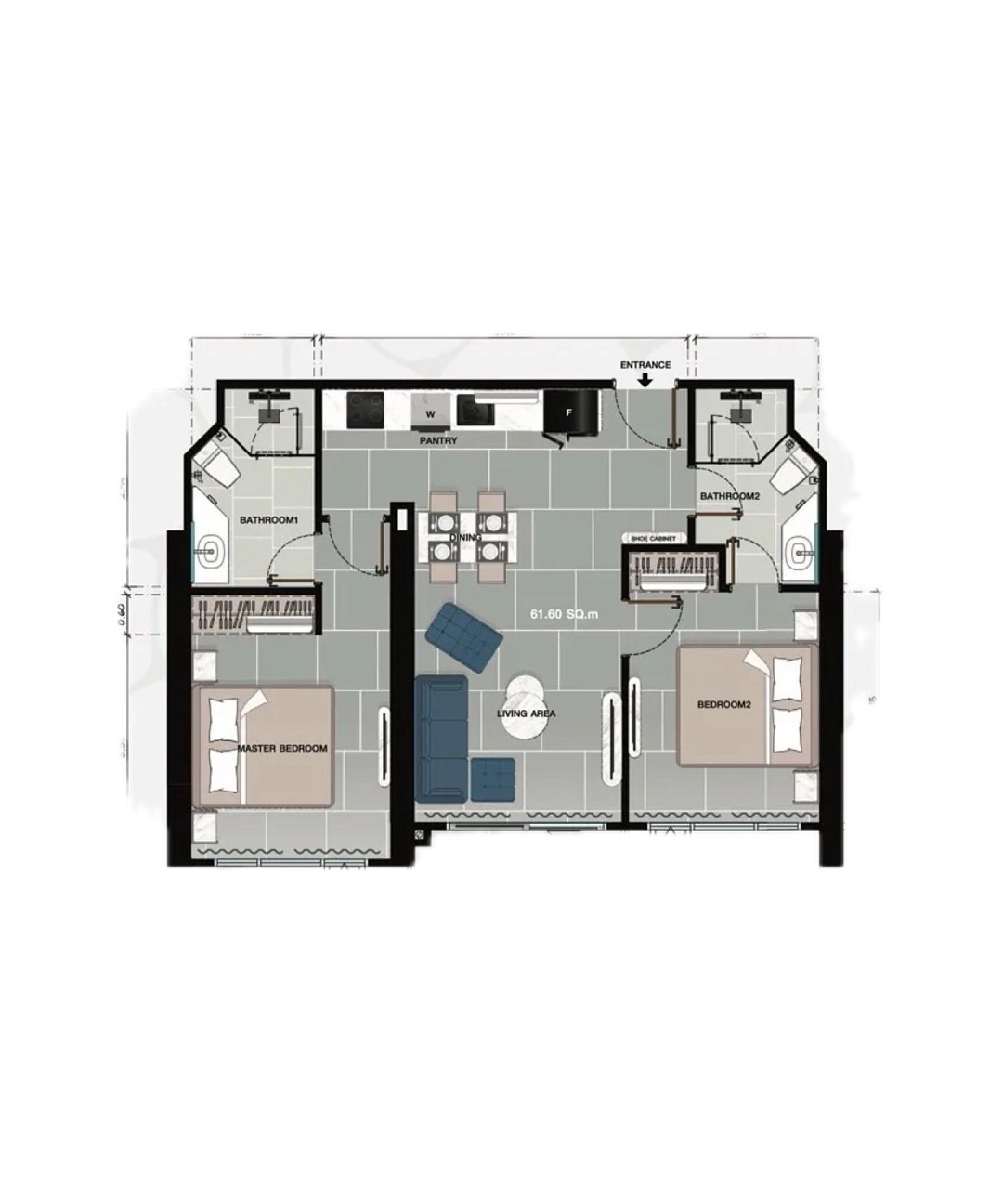 Copacabana 2 Coral Reef — апартаменты с 2 спальнями, 67.60 м²