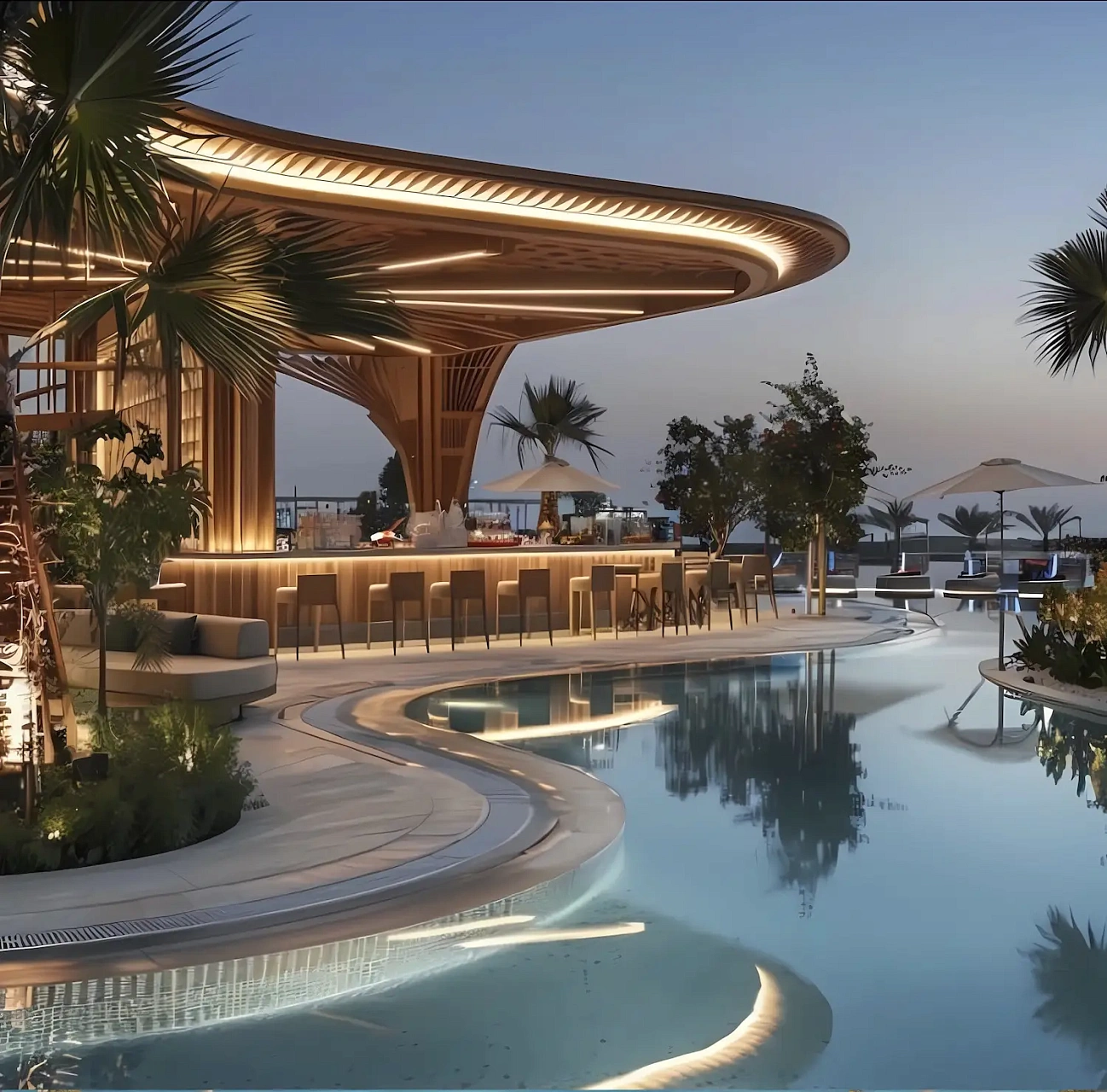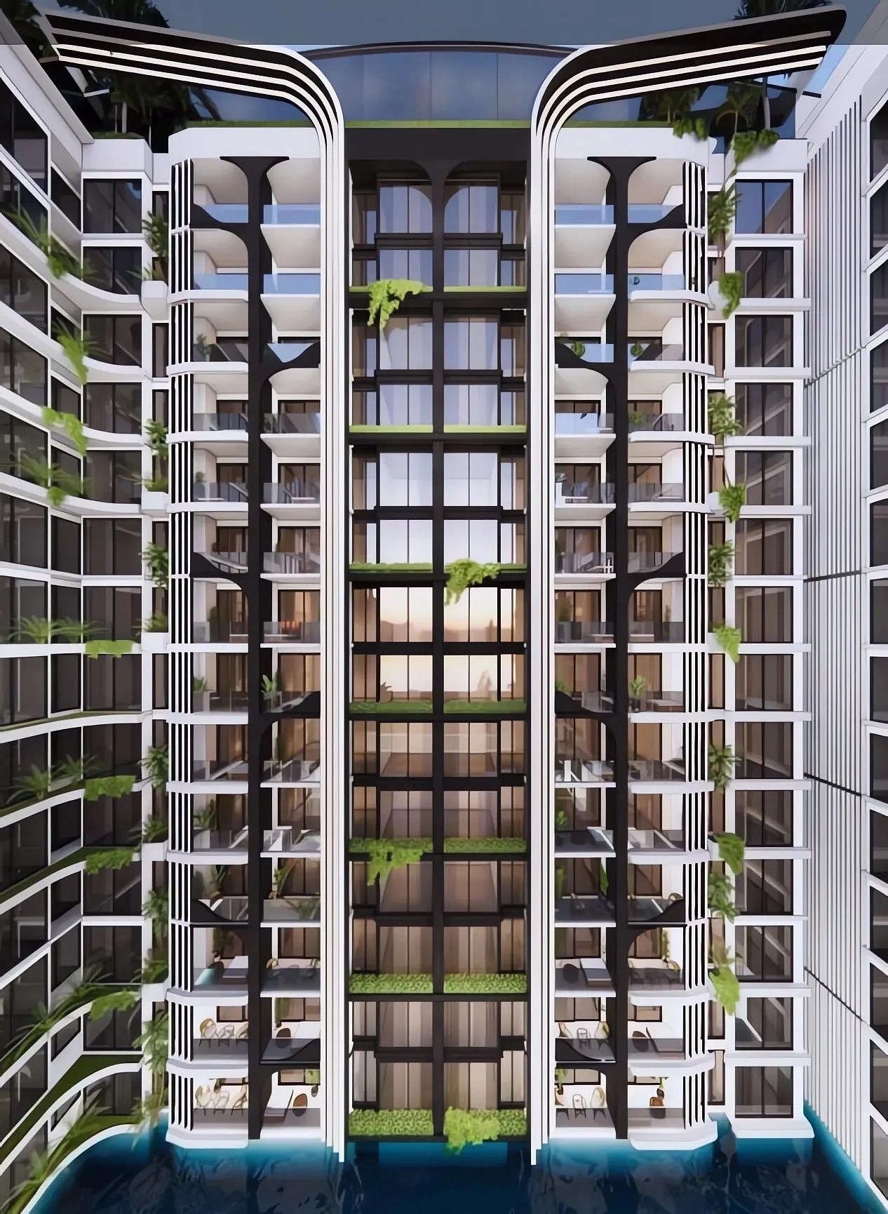 - Продуманная инфраструктура: 70-метровый бассейн с гидропотоком, фитнес-зал, коворкинг и зоны отдыха, включая йога-террасу, обеспечивают комфорт для жизни и работы.