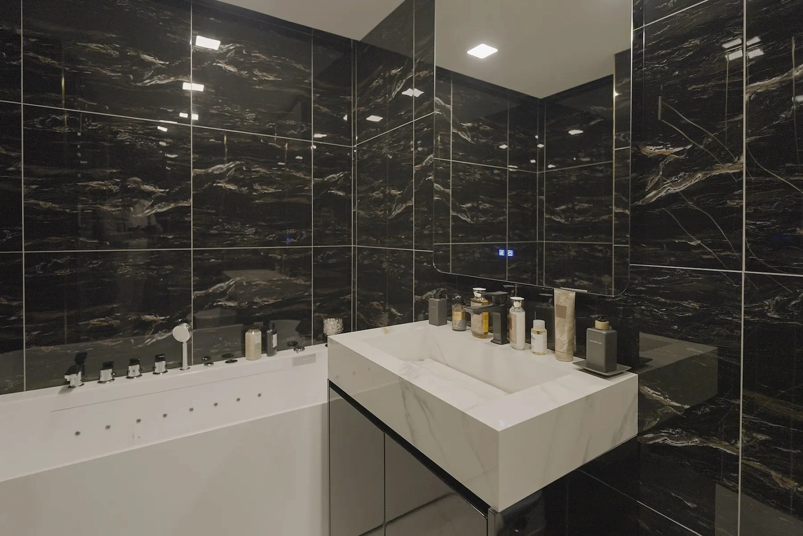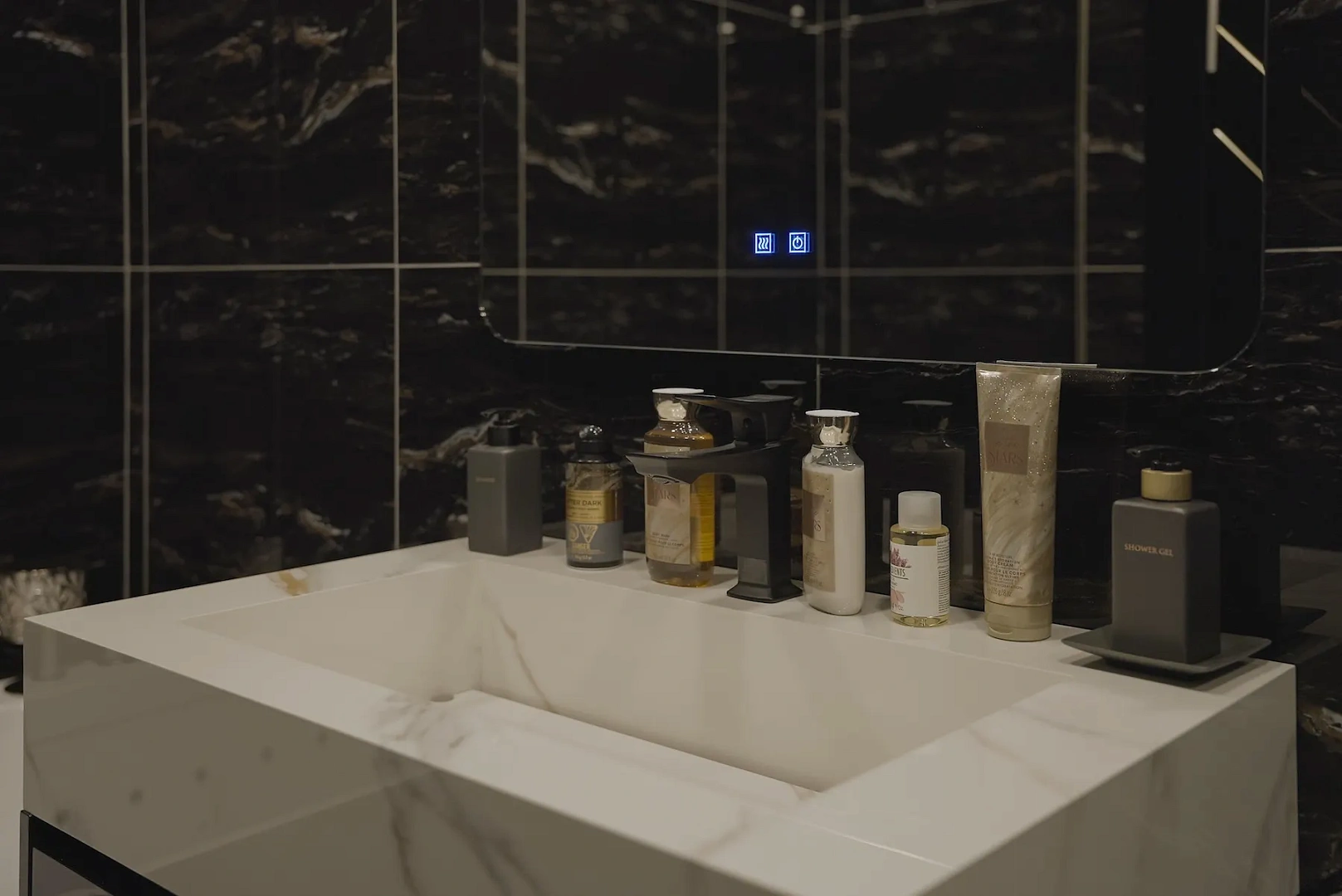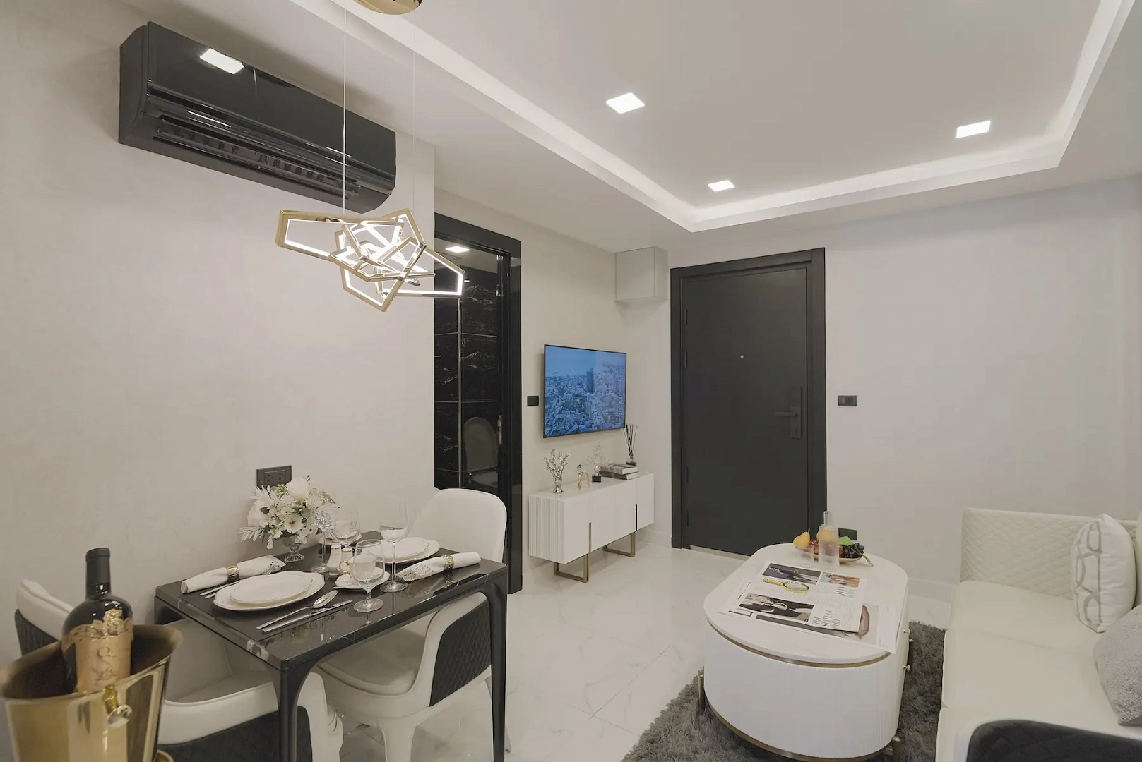 - Премиальный дизайн: Апартаменты с элегантными черными кухнями европейского стандарта, мраморной отделкой и энергоэффективными технологиями созданы для максимального комфорта и статуса.