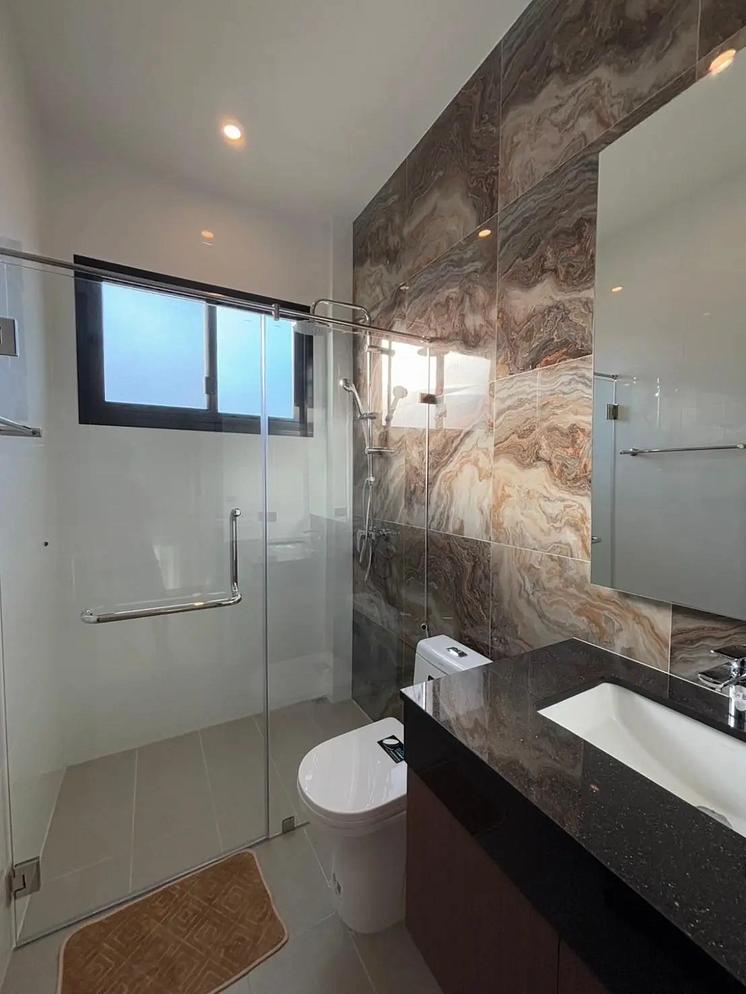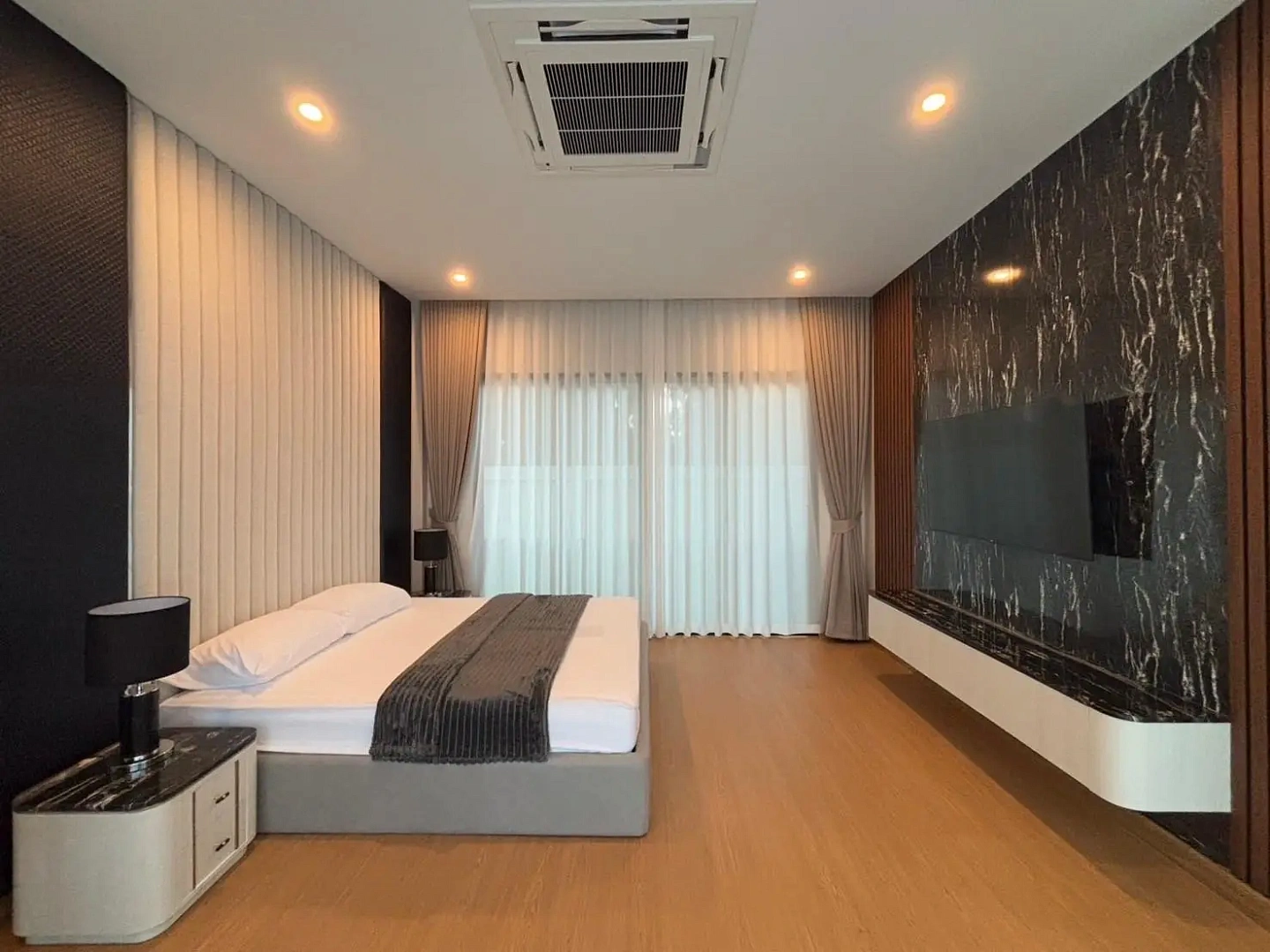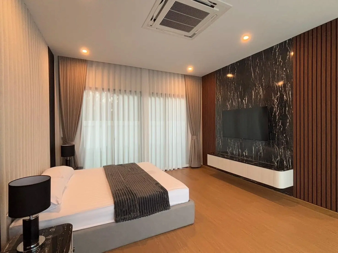 - Функциональная планировка:Вилла с 3 спальнями, 4 ванными комнатами, открытой гостиной, европейской и отдельной тайской кухнями, а также просторным участком с садом, бассейном и зоной барбекю.
