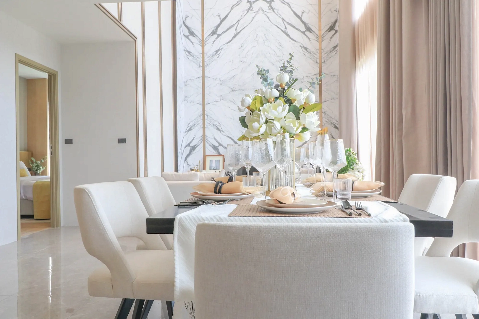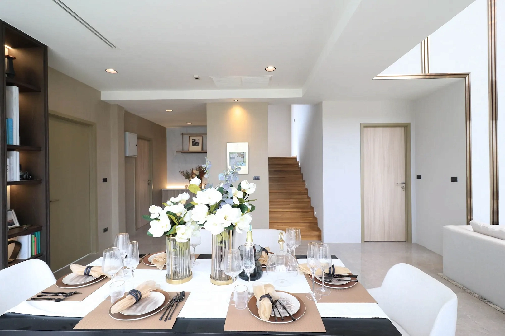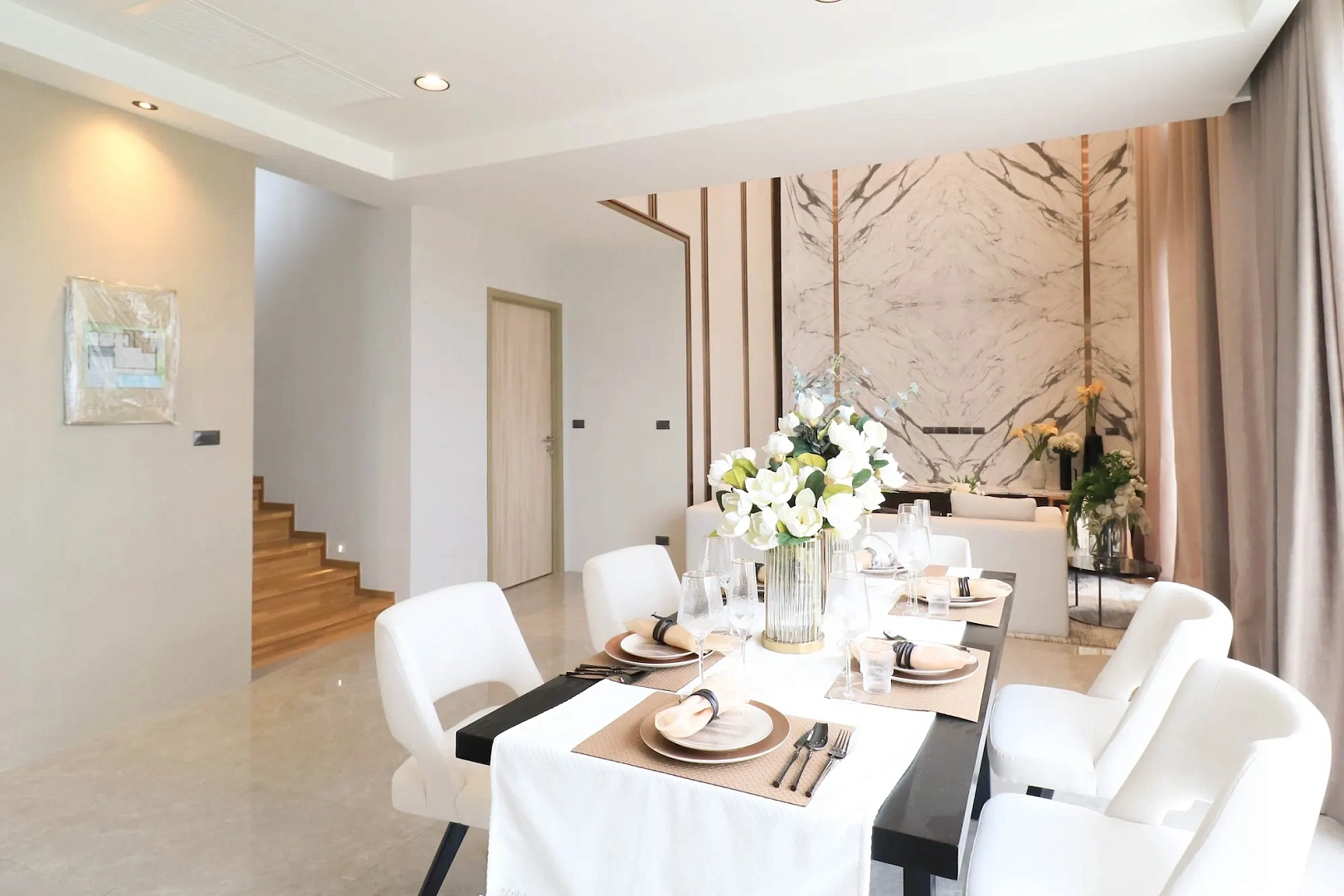 - Cassia (4 спальни, 5 ванных): Двухэтажный дом 285–298 м² на участке 248–408 м², панорамные окна, кухня с островом, гостиная с ТВ, мастер-спальня с балконом; для небольшой семьи с приватным бассейном 12,5×9 м и зоной релакса.