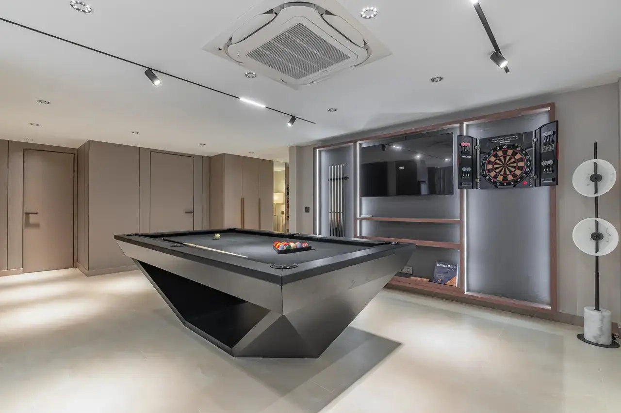 Особенности: Зона отдыха с бильярдом и баром (50 м²), кухня с BBQ и газовой плитой, гостиная с потолками 6 м, прачечная с техникой, кладовая, тропическая зона