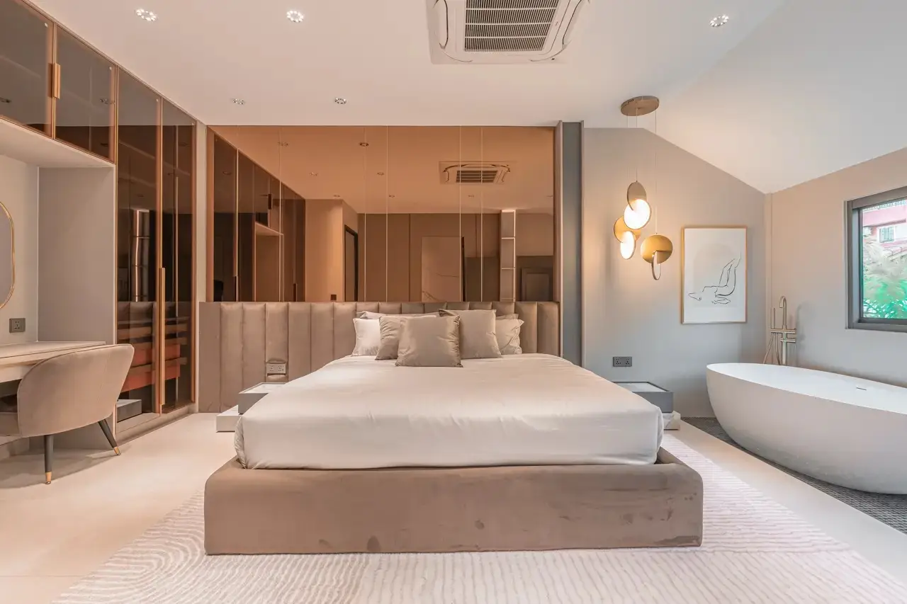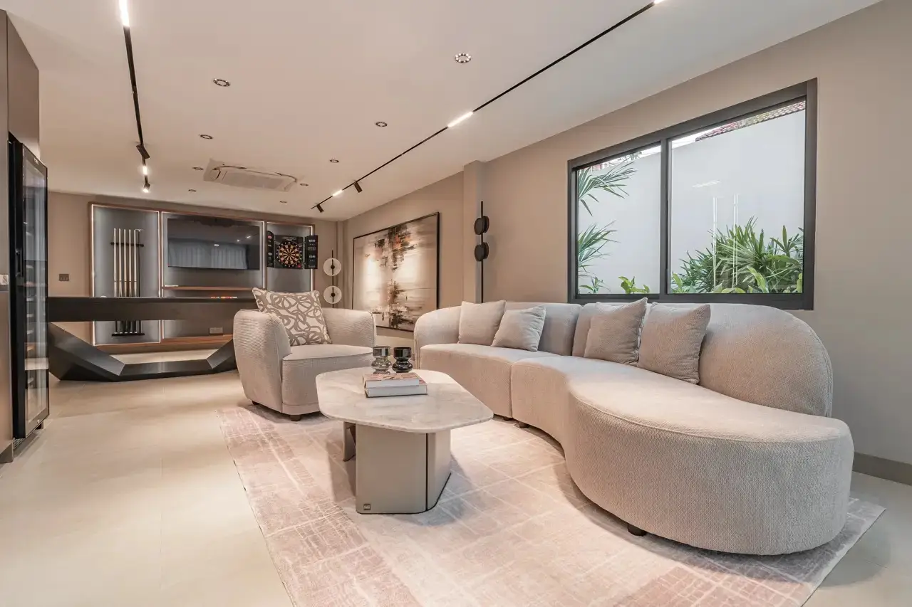 - Инвестиционная выгода: Вилла с четырьмя меблированными спальнями, пятью ванными, зоной отдыха с бильярдом и баром (50 м²), кухней с BBQ, гостиной с потолками 6 м, прачечной с техникой и тропической зоной, обеспечивающая комфорт и потенциал аренды.