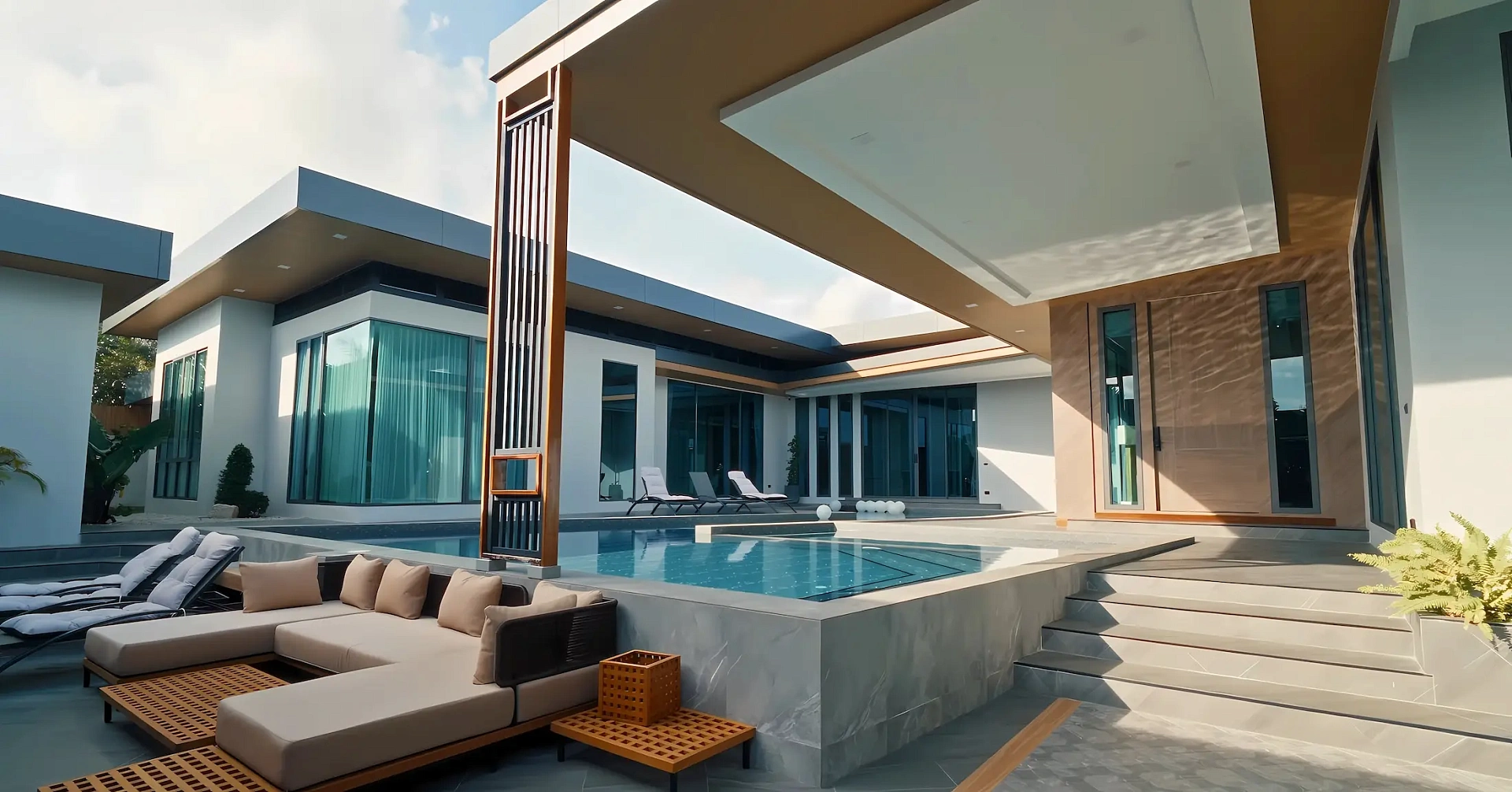 - Продуманная инфраструктура: Закрытый комплекс из 9 вилл, завершенный в 2023 году, окружен живописной зеленью, с бассейнами, джакузи, тренажерным залом, зонами для йоги и круглосуточной охраной.