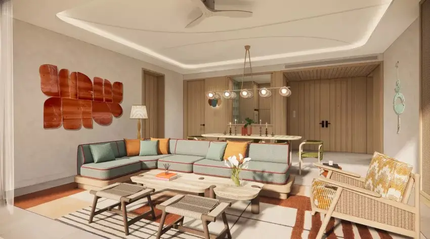 - Уникальный дизайн: Архитектура, вдохновленная Майами 70-х, с интерьерами в теплых тонах, пастельными акцентами и ландшафтным дизайном Blue Garden, воссоздающим атмосферу морских волн.
