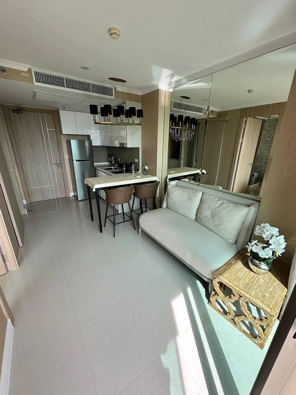 Riviera Jomtien – 1-bedroom (35 м²) — абсолютно новая квартира с Premium ремонтом от Royal Property в современном жилом комплексе в Паттайе. Расположена на 16 этаже с видом на море. Полностью укомплектована и готова к проживанию.