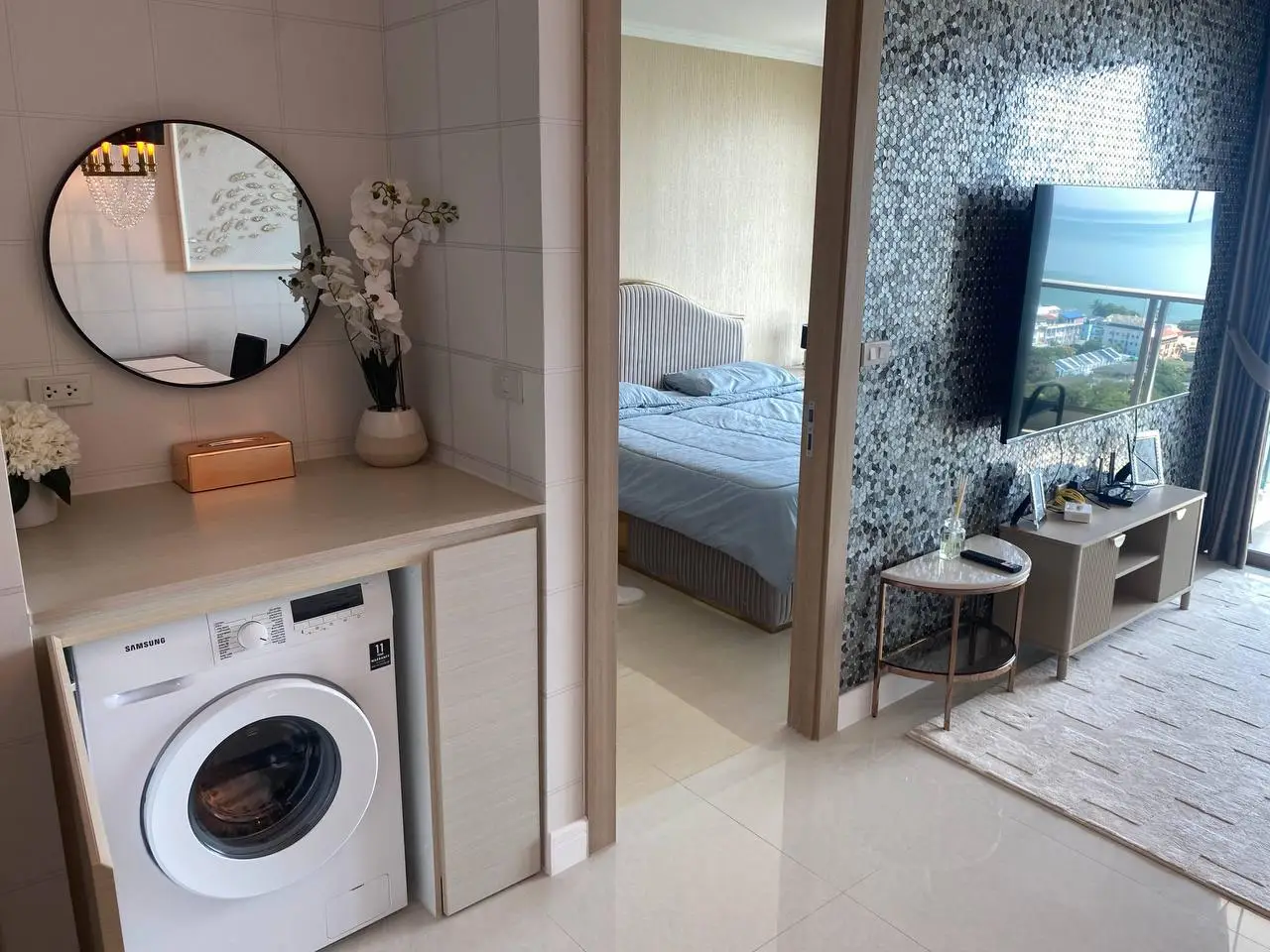 - Близость к пляжу: 350 м от пляжа Джомтьен, рядом с ресторанами, магазинами и транспортными узлами для удобного доступа к центру Паттайи.