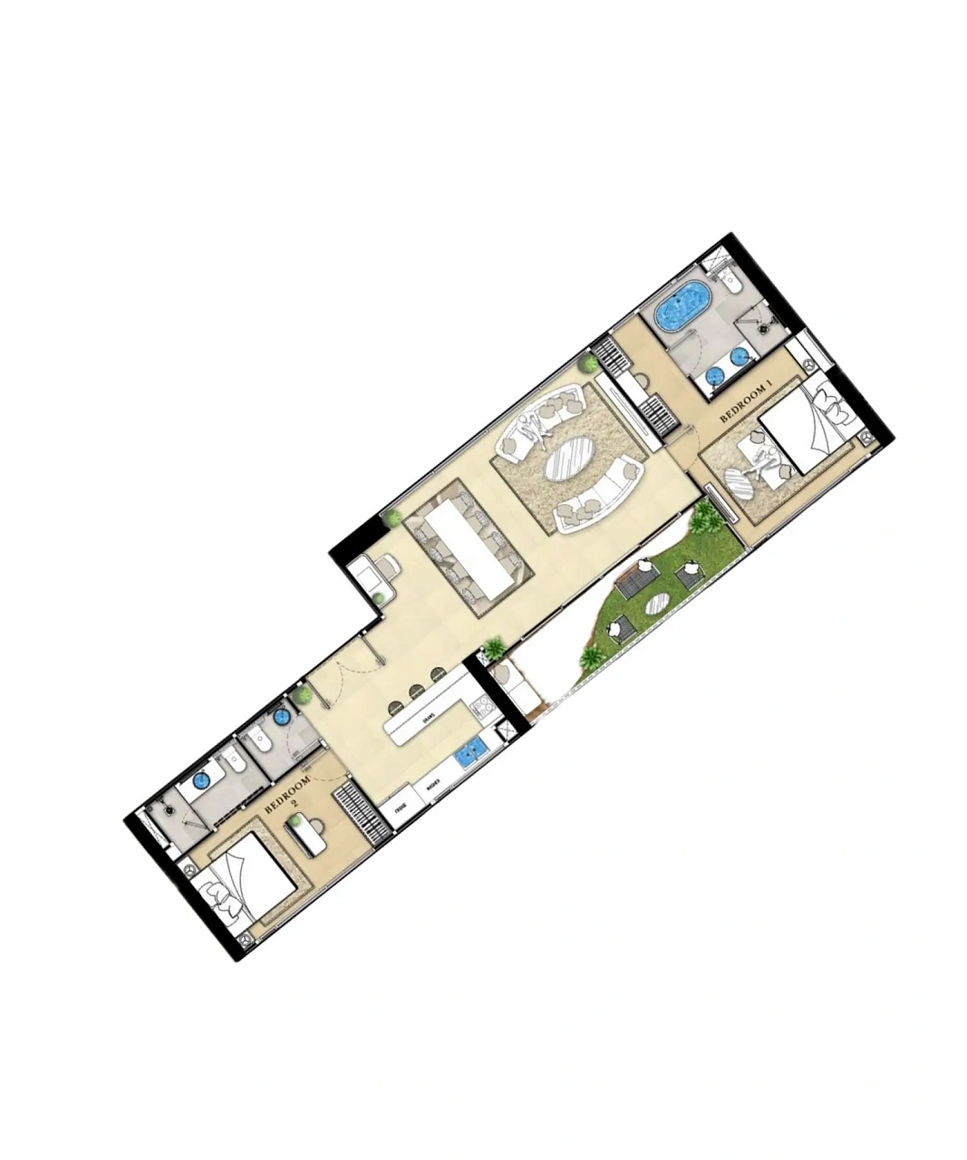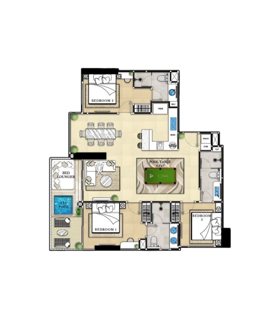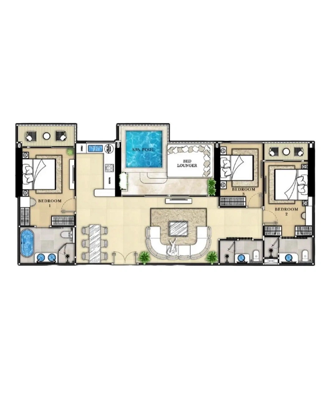 - Роскошный дизайн: Полностью меблированные резиденции с умной технологией, включая управление освещением и кондиционером через мобильное приложение, встроенные аудиосистемы и элегантные интерьеры, вдохновленные стилем Малибу.