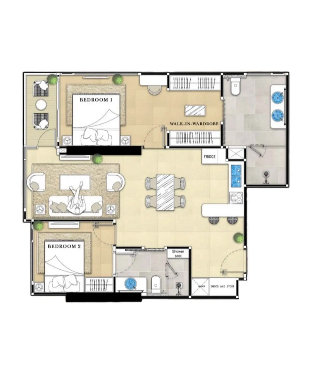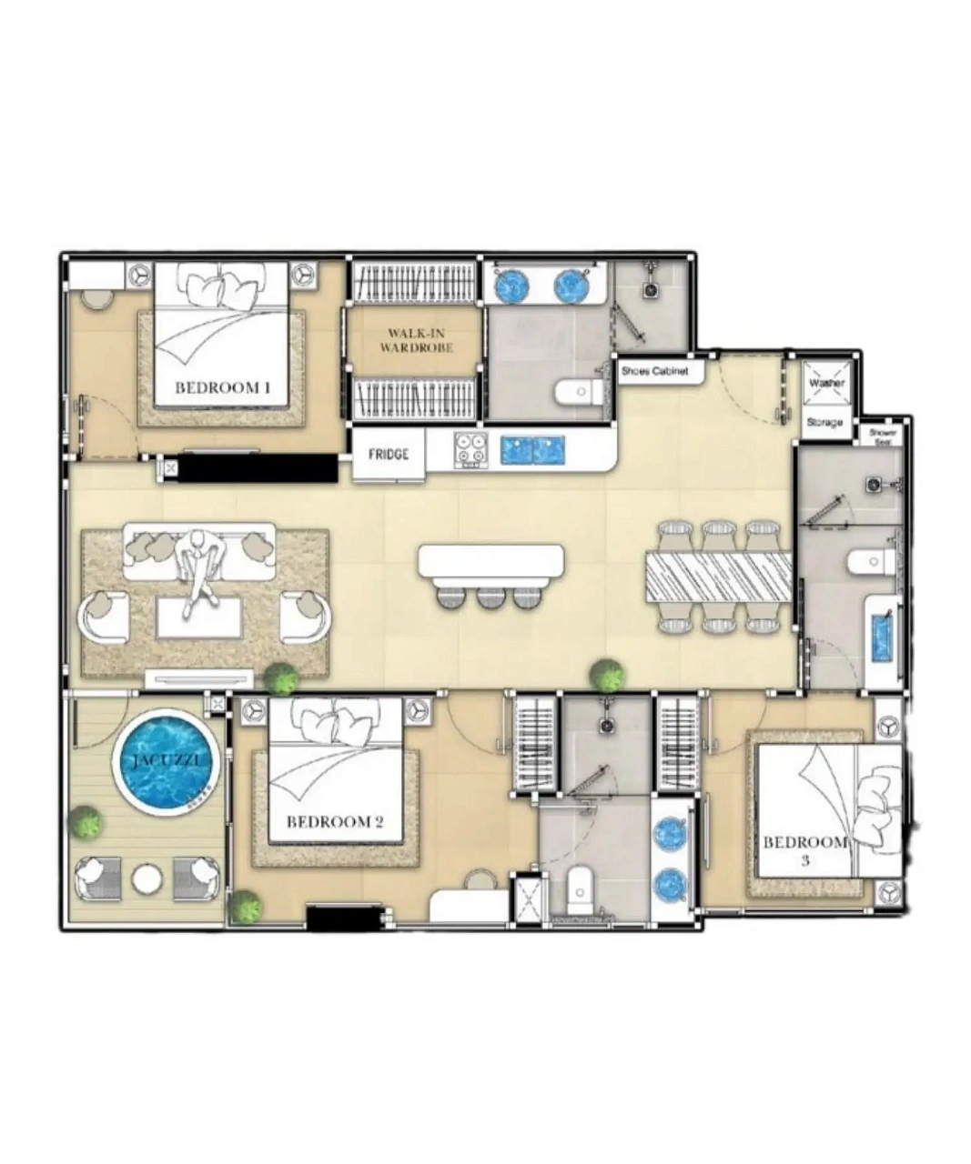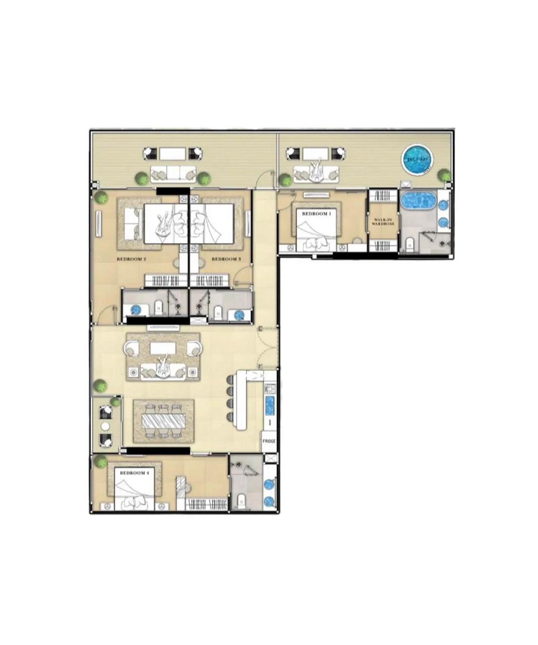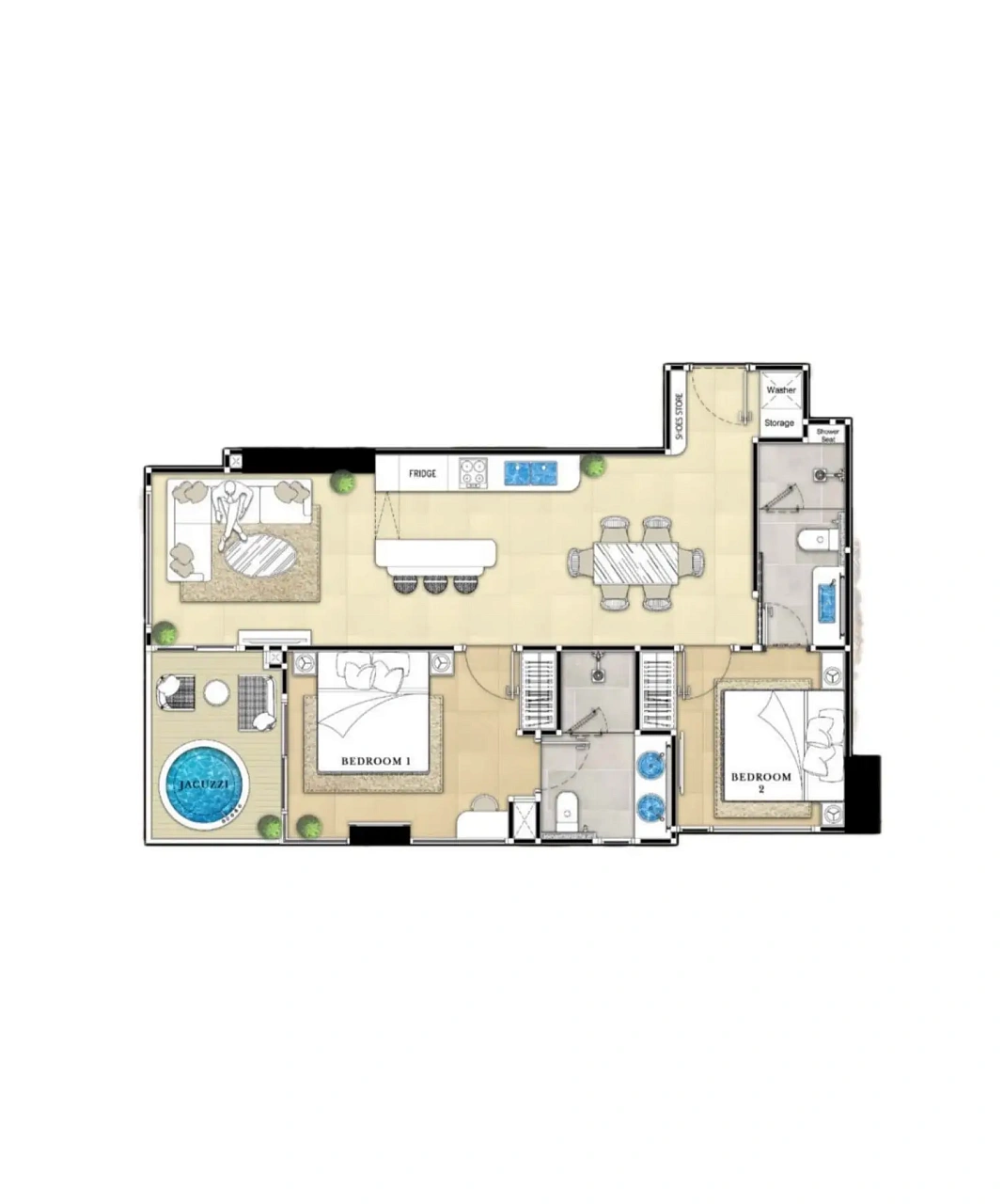 - Роскошный дизайн: Полностью меблированные резиденции с умной технологией, включая управление освещением и кондиционером через мобильное приложение, встроенные аудиосистемы и элегантные интерьеры, вдохновленные стилем Малибу.