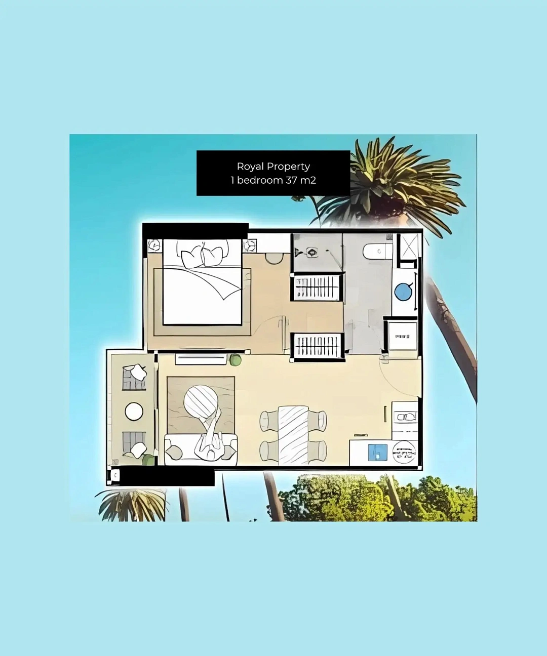 Riviera Malibu — апартаменты с 1 спальней, 37 м²