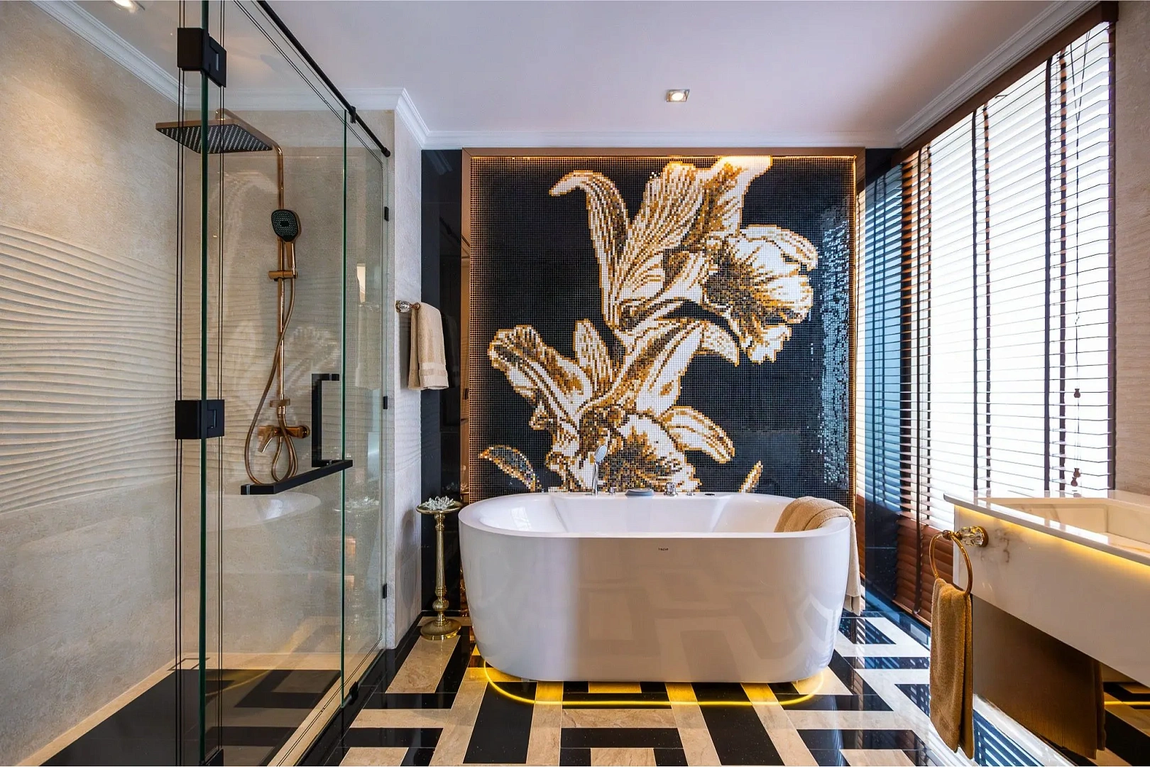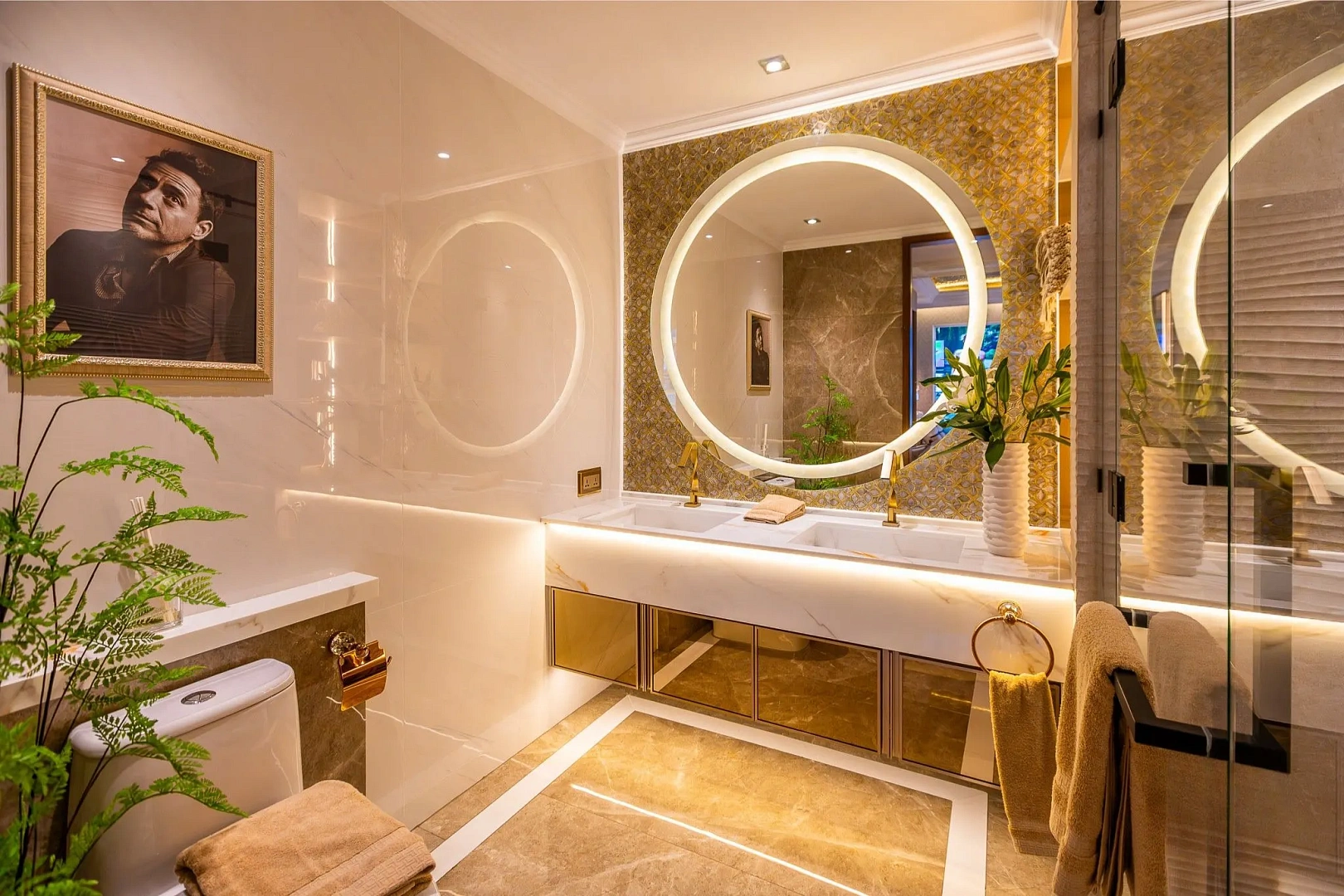 - Сантехника премиум-класса, подчёркивающая статус апартаментов