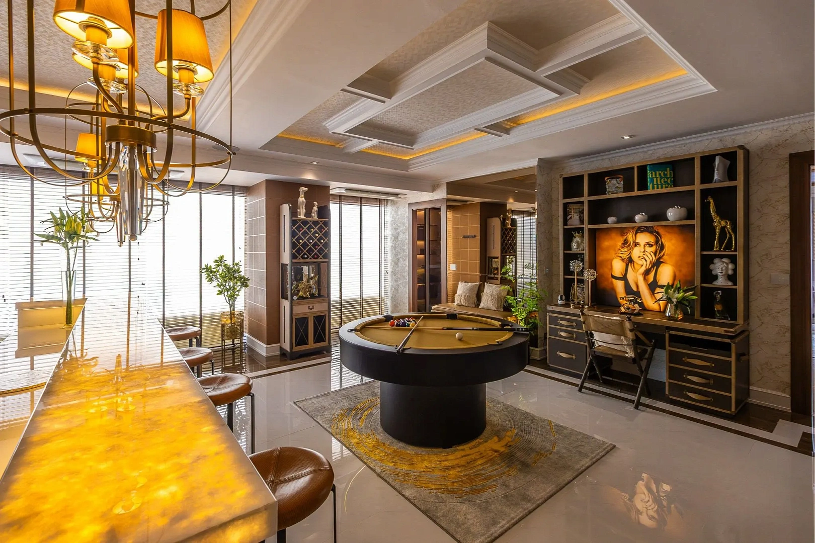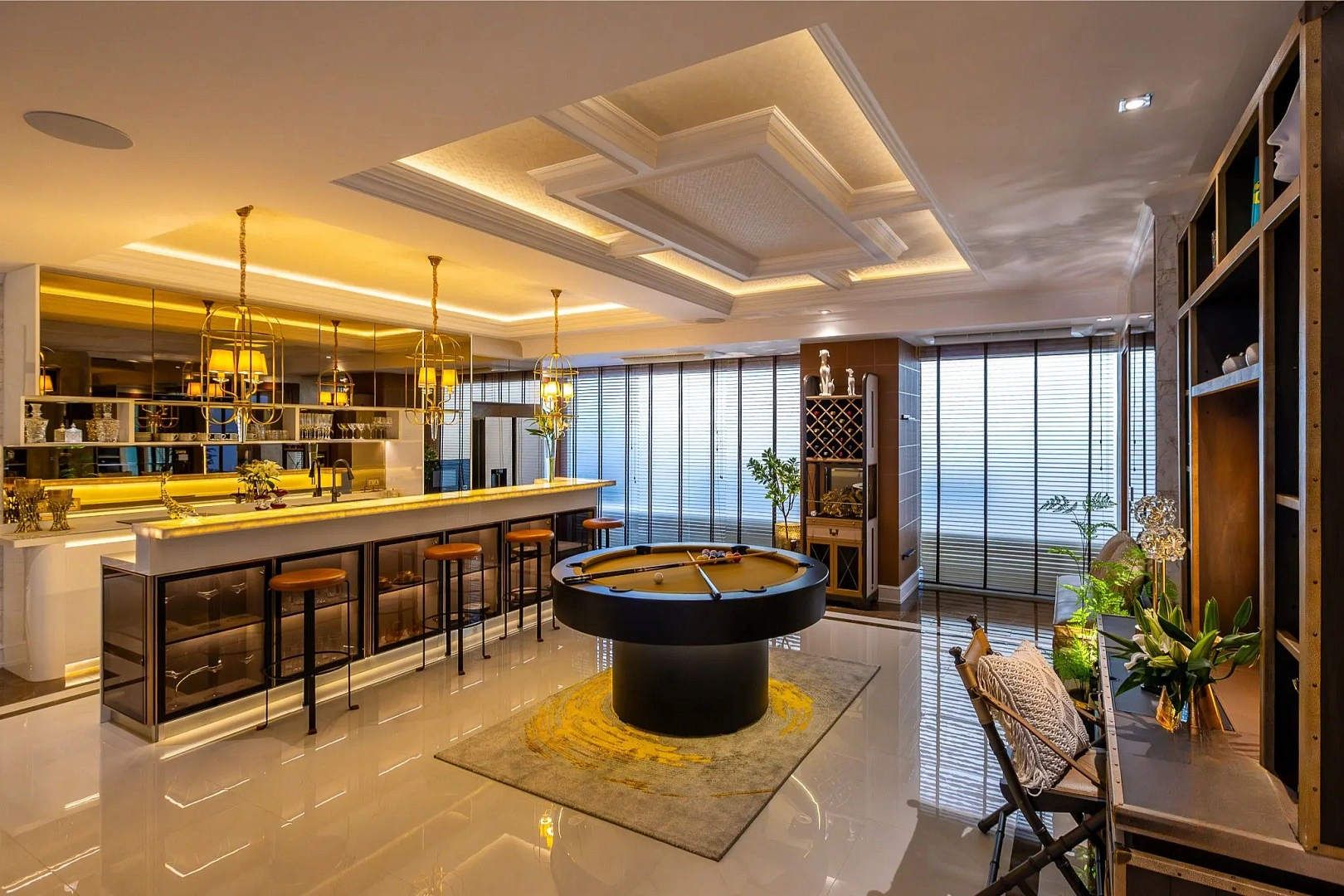 - Пятизвездочные удобства: 20-метровый скай-пул с джакузи, гольф-симулятор, лаундж на 28-м этаже, фитнес-центр с кардио- и силовыми зонами, а также доступ к услугам отеля, включая консьерж-сервис и рестораны.