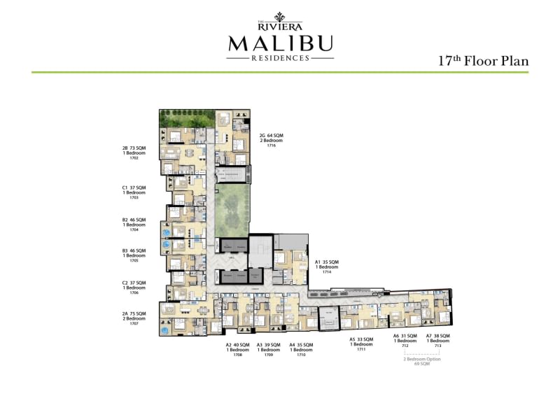 The Riviera Malibu — апартаменты с 2 спальнями, 69 м² ID537312