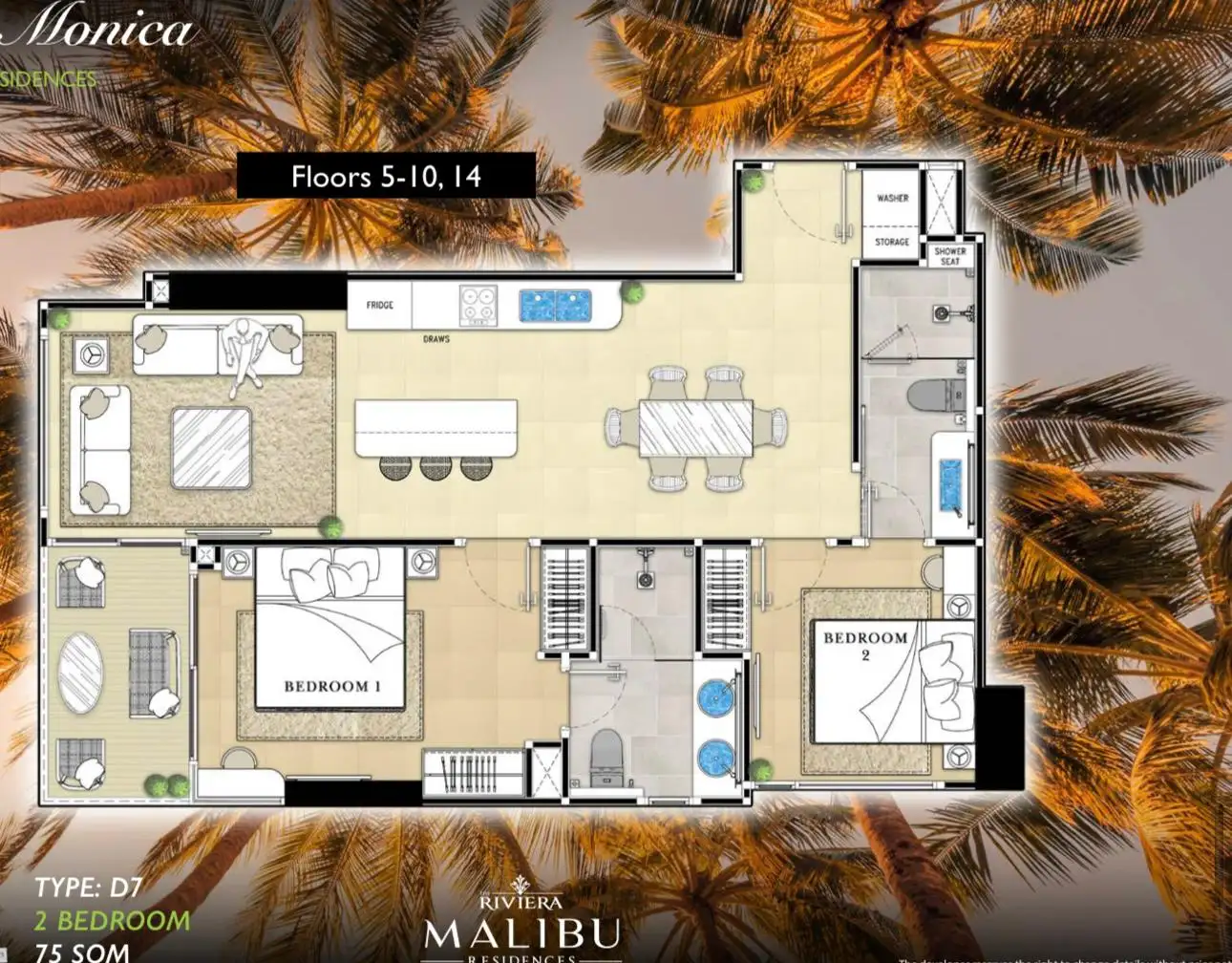 О квартире The Riviera Malibu — апартаменты с 2 спальнями, 75 м² ID578040