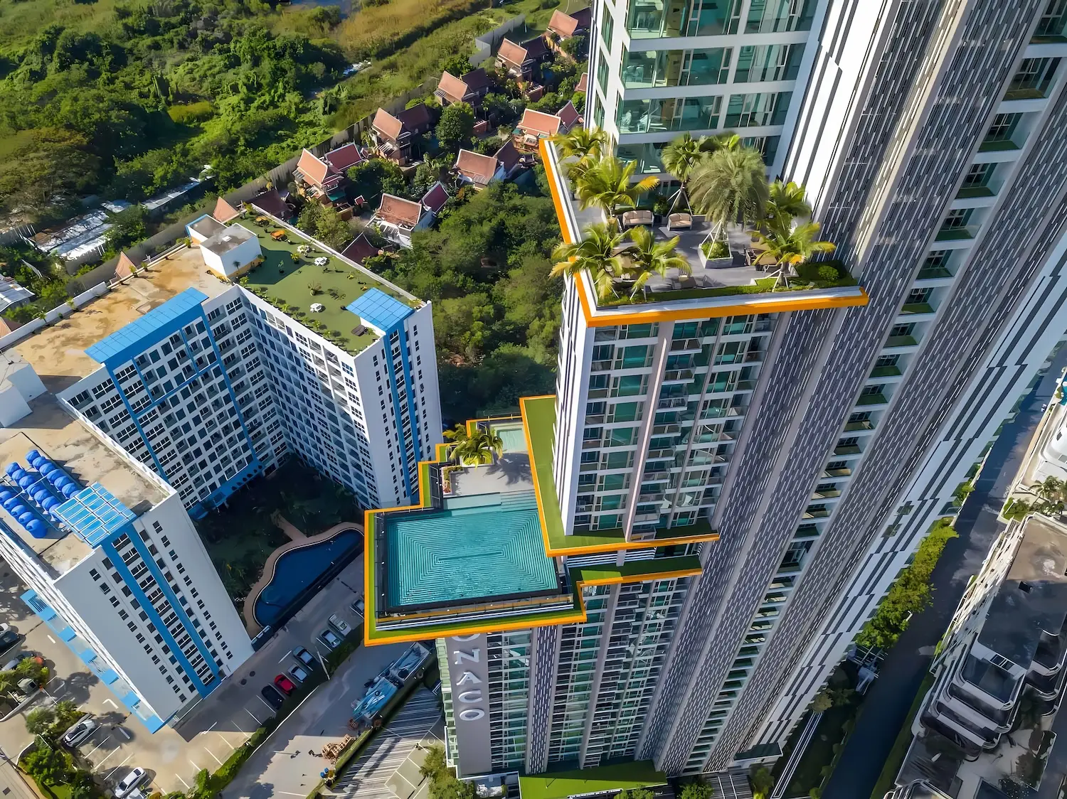 Локация небоскреба просто феноменальна: башня расположена в элитной респектабельной зоне На Джомтьен, всего в 200 метрах от роскошного и чистого моря! Огромные панорамные окна комплекса дарят ничем не перекрываемые, по-настоящему захватывающие дух виды на бескрайний сверкающий океан с любой высоты. -