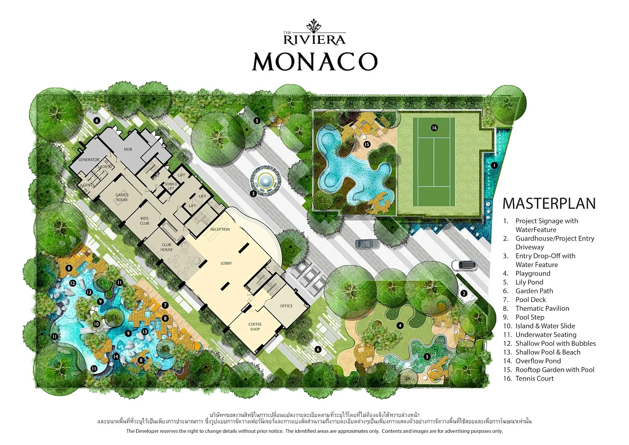 Riviera Monaco — это потрясающий 40-этажный кондоминиум класса "ультра-люкс" (на 412 квартир) от легендарной компании Riviera Group. Этот готовый высотный шедевр на На Джомтьен объединяет в себе эксклюзивный авторский дизайн, 5-звездочную отельную инфраструктуру и фантастические панорамные виды на море! -