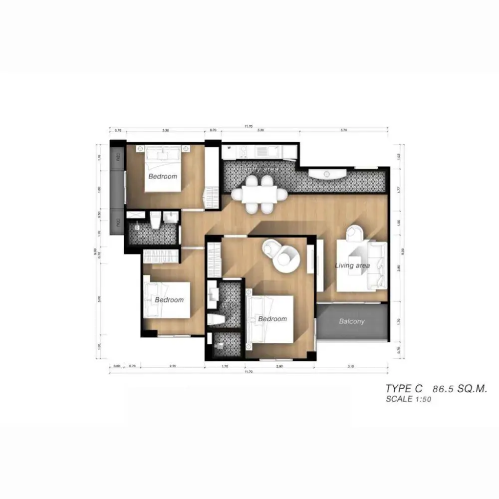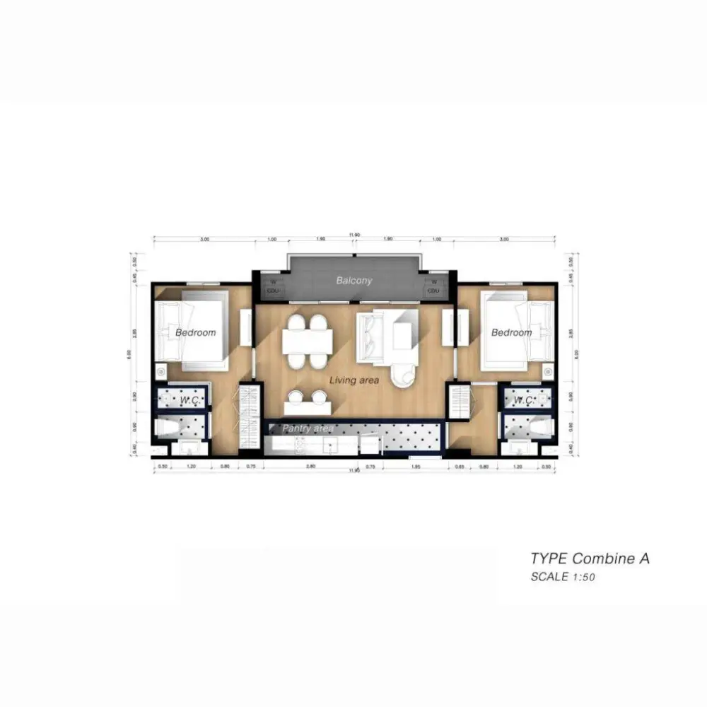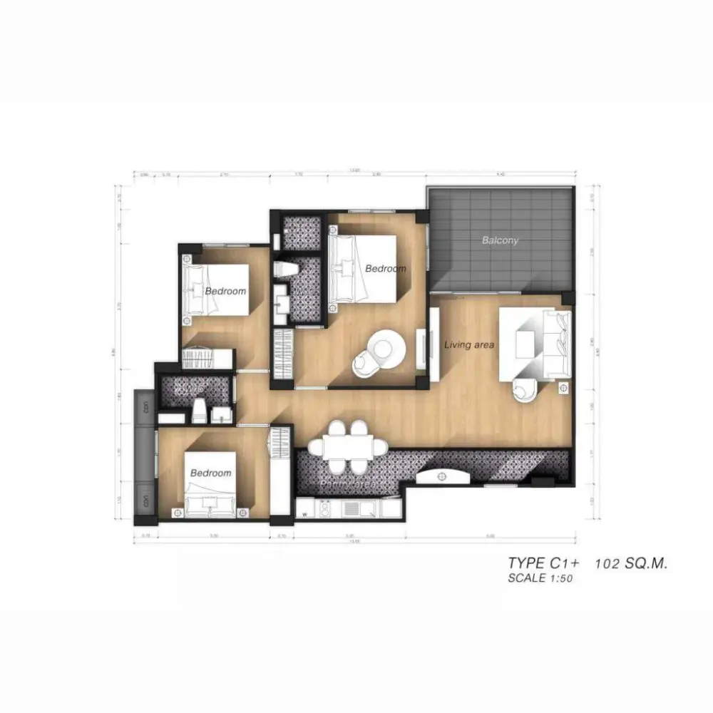 - Близость к пляжу: 300 м от Na Jomtien Beach, рядом с Floating Market, Underwater World и удобной транспортной развязкой до центра Паттайи.