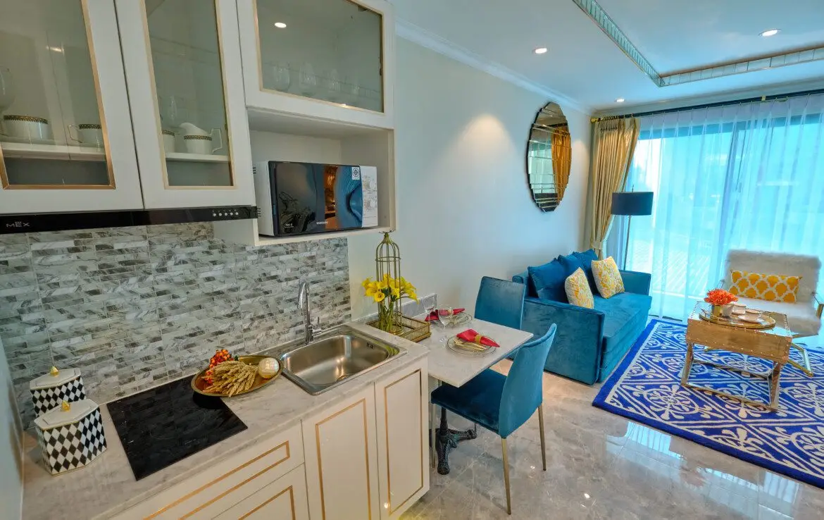 Квартира с современным дизайном и качественной отделкой в районе Джомтьен. Идеальный вариант для комфортной жизни или инвестиций: 1 bedroom с совмещенной гостиной и кухней, отдельной спальней. Комплекс предлагает высокий уровень комфорта и удобное расположение.