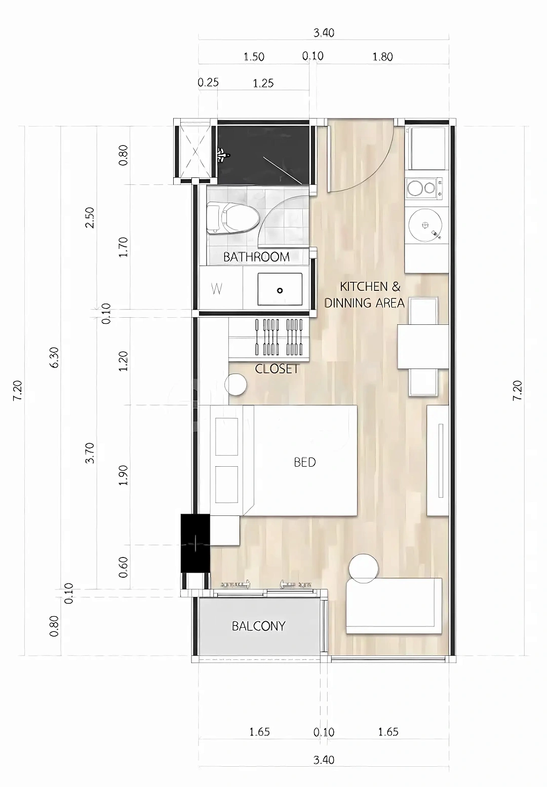 Уютное жилье с качественной отделкой, готовое к сдаче в аренду. Удобное расположение в Пратумнаке обеспечивает близость к пляжу и ключевым объектам, что делает студию отличным выбором для краткосрочного проживания.