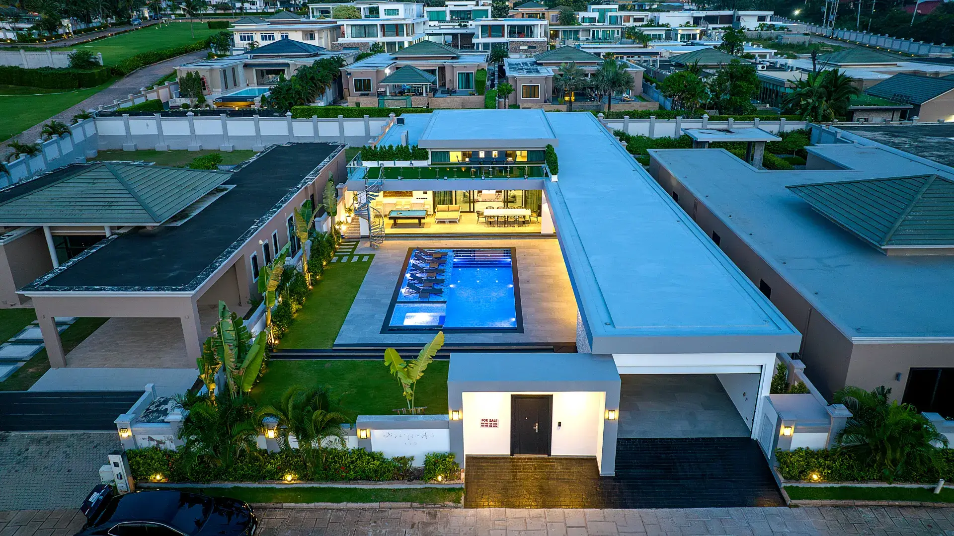 Вилла построена по высочайшим стандартам люкс-уровня! К вашим услугам: шикарная встроенная кухня MasterChef, огромный современный домашний кинотеатр, бильярдная комната, приватный 12-метровый мраморный инфинити-бассейн с зоной отдыха, а также гараж на 2 авто с встроенной зарядкой для электромобилей! - Какова стоимость этой роскошной статусной виллы?