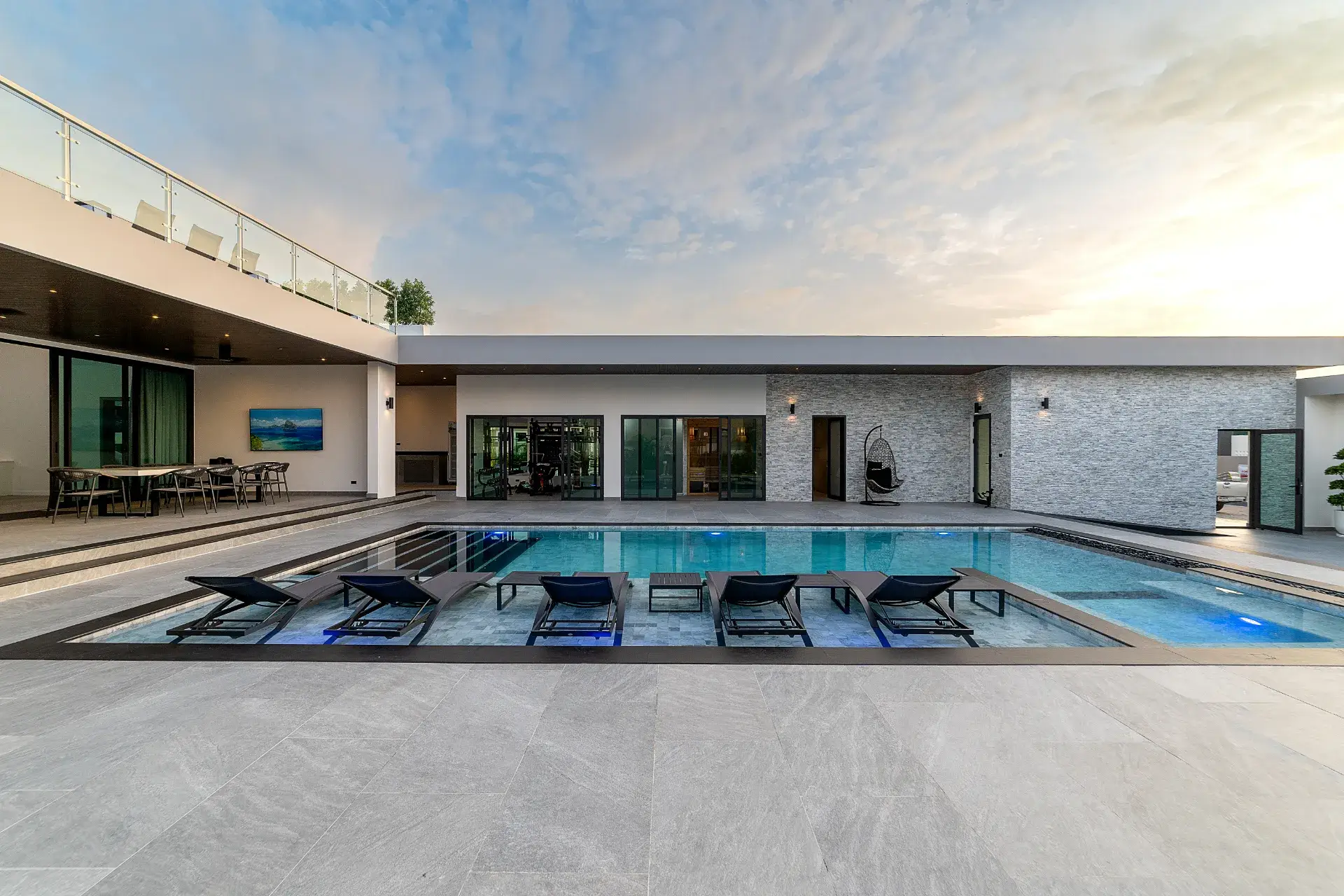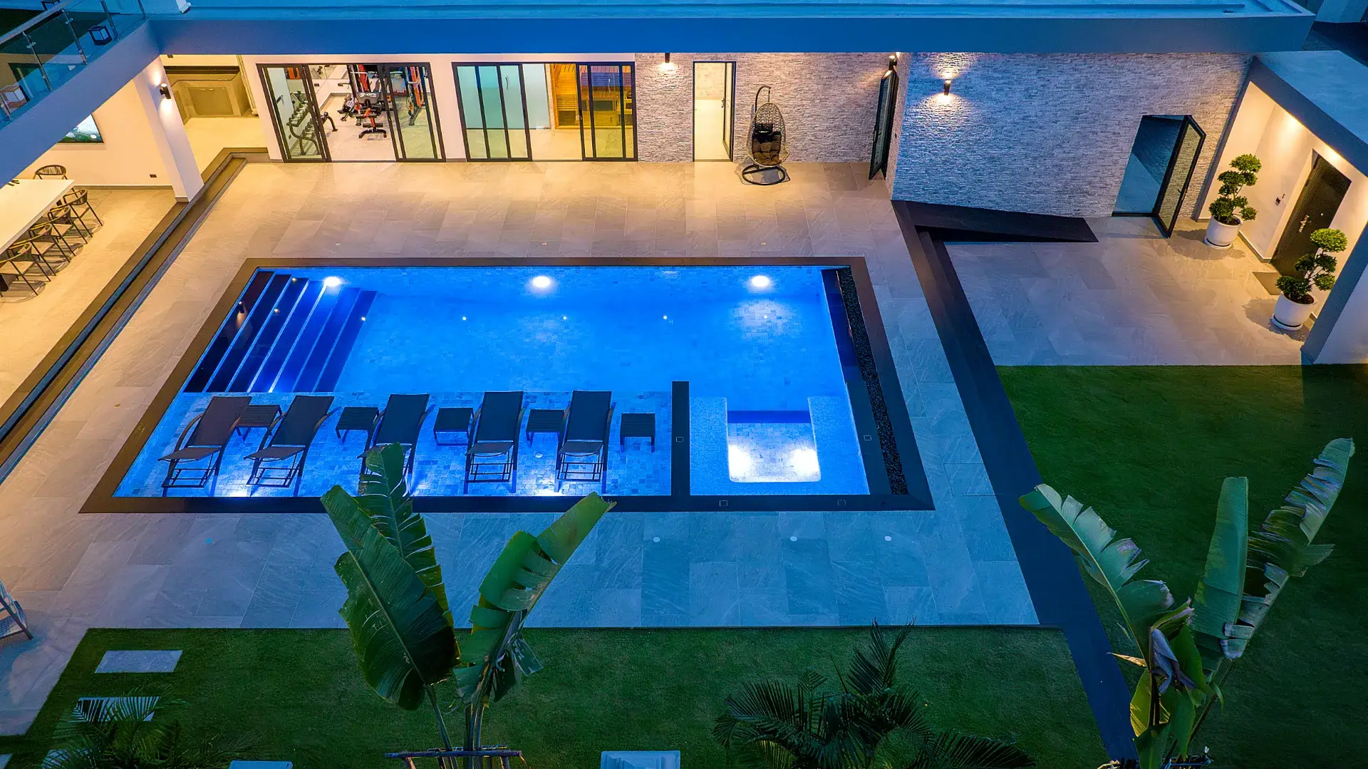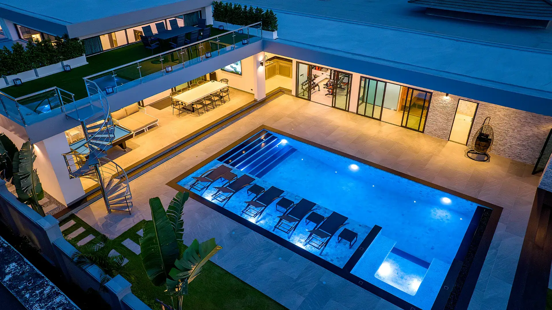 - Продуманная планировка: Вилла с шестью спальнями, светлым атриумом, кухней в стиле MasterChef, шестью ванными с джакузи, 12-метровым мраморным бассейном, кинозалом, фитнес-залом, сауной, бильярдной и террасой с видом на океан.
