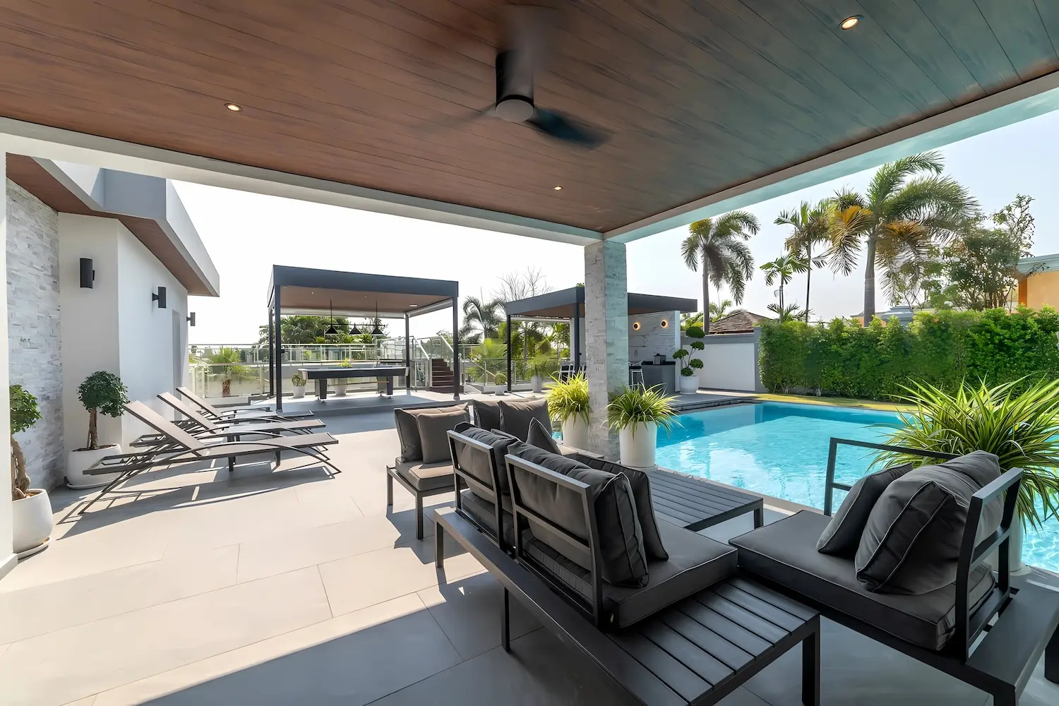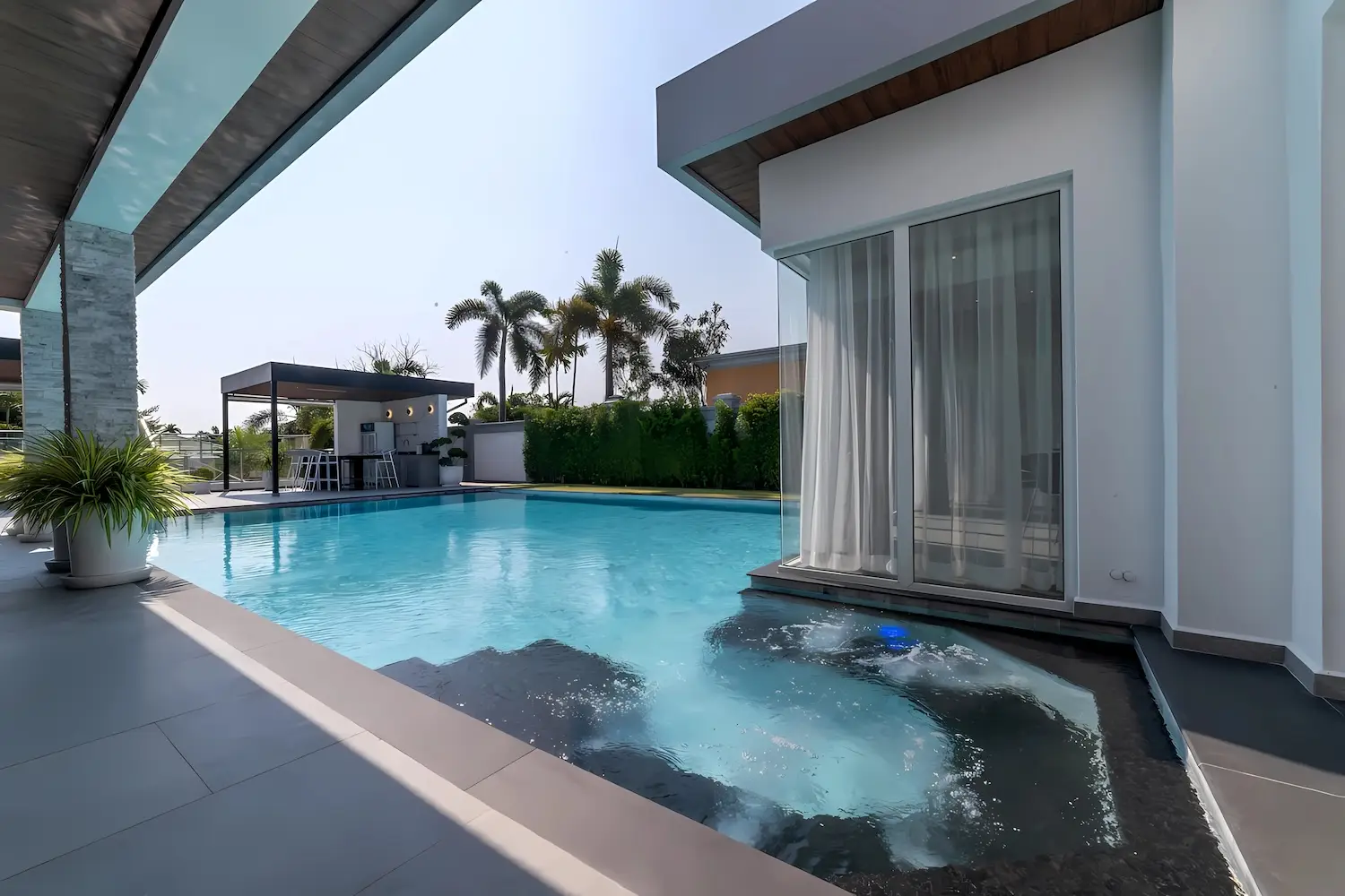 Идеально! Огромные светлые открытые пространства, просторная шикарная гостиная с высоким атриумом, огромный мраморный бассейн на 100 квадратных метров и стильные террасы позволят вам наслаждаться роскошными вечеринками или спокойным теплым семейным отдыхом на высшем уровне в Паттайе. - Какова стоимость этой потрясающей роскошной виллы?