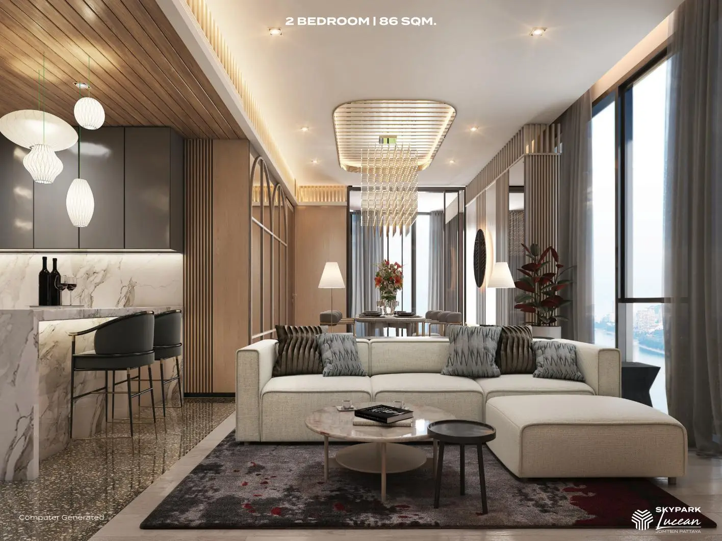 Skypark Lucean Jomtien — это шедевральный высотный кондоминиум (две грандиозные башни на 60 и 31 этаж, 889 квартир), созданный для тех, кто ищет надежное и потрясающе современное жилье класса люкс. Проект обладает гигантским инвестиционным потенциалом в самом быстрорастущем районе Паттайи! -