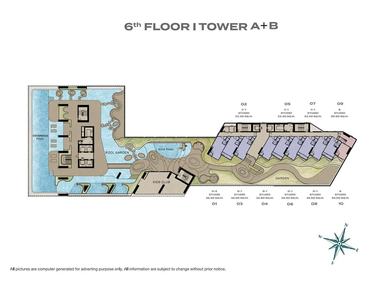 - Функциональная инфраструктура: Инфинити-бассейн на крыше, фитнес-центр, йога-студия, библиотека с коворкингом и детская зона для комфортного проживания и работы.