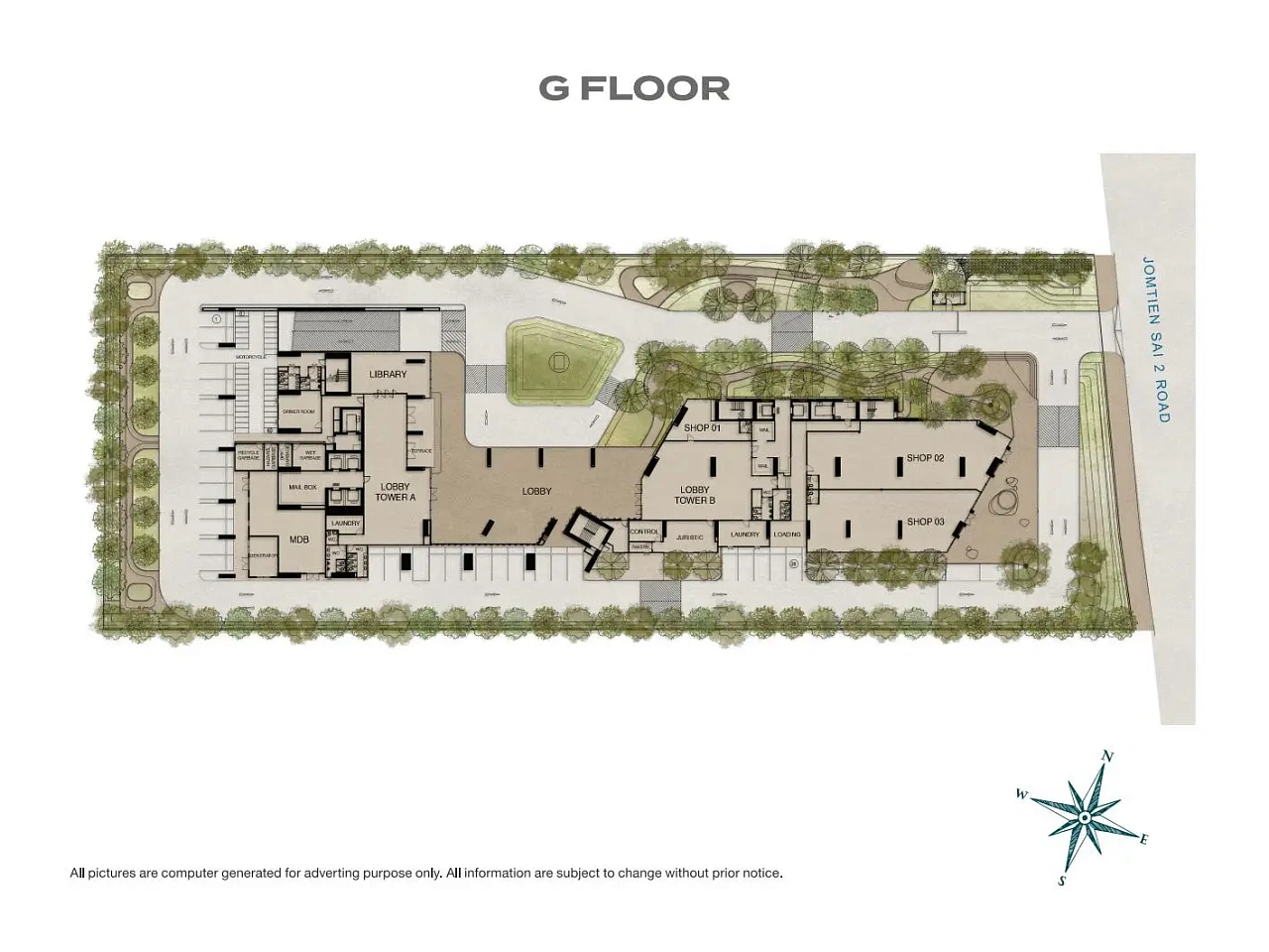 - Оптимальное расположение: Всего 200 м от пляжа Джомтьен, с доступом к Victory Park, Ramayana Water Park и Walking Street, обеспечивая удобство и близость к ключевым объектам инфраструктуры.