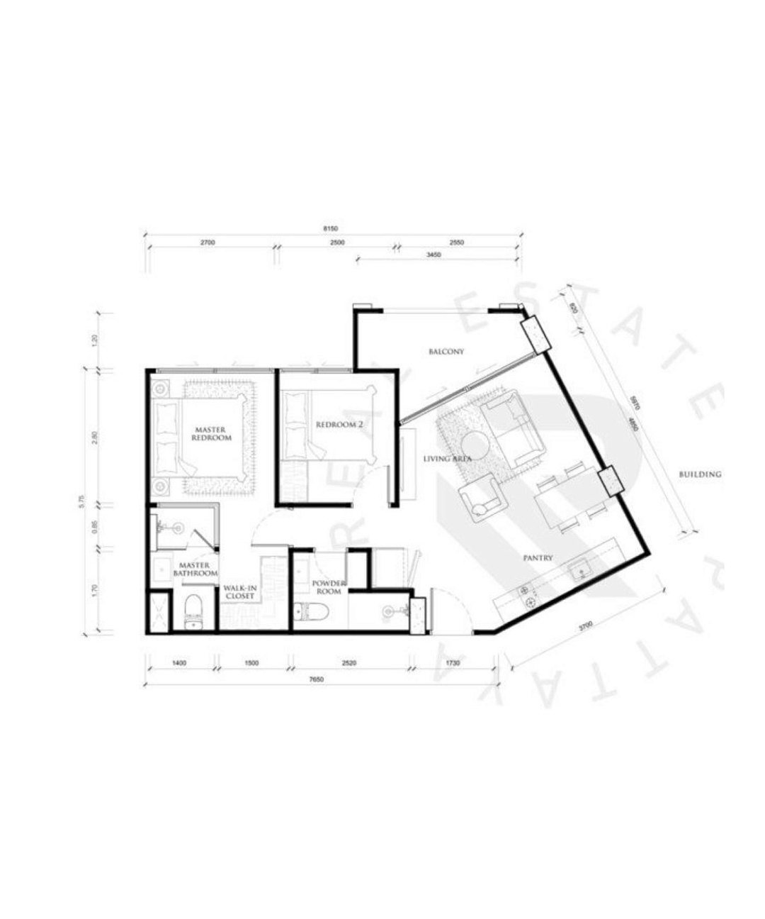 The Embassy — апартаменты с 2 спальнями, 51 - 102 м²