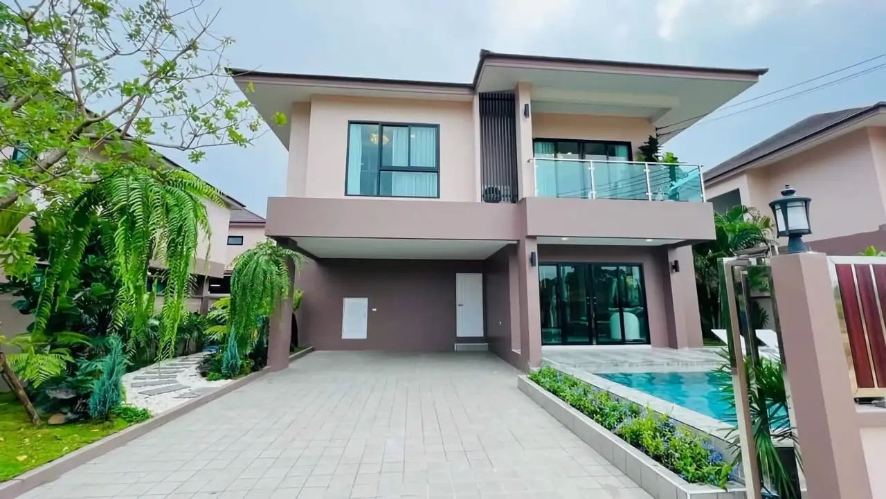 Современная вилла с пятью спальнями в The Lake Huay Yai, район Банг Ламунг, Паттайя. Включает пять спален, три ванные, гостиную, кухню, бассейн, сады. Идеально для жизни и отдыха.