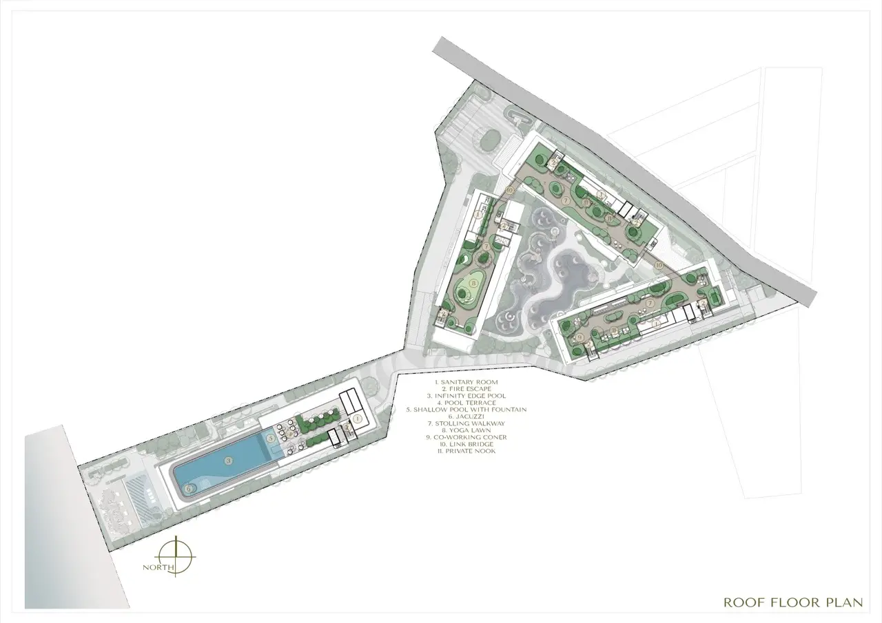 - Развитая инфраструктура: Sky Pool, лагуна-сад, фитнес-центр, онсен, коворкинг, мини-кинотеатр, детские площадки, а также супермаркет и кофейня на территории.