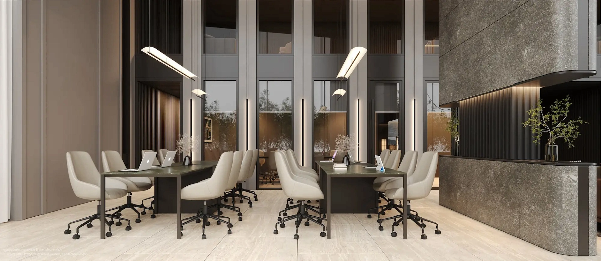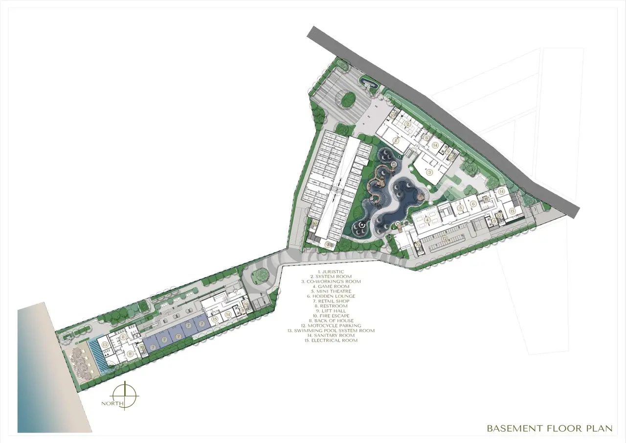 - Уникальная концепция: Дизайн, вдохновленный мангровыми лесами, сочетает природные мотивы с современной архитектурой, создавая комфортные пространства с панорамными окнами и естественным освещением.