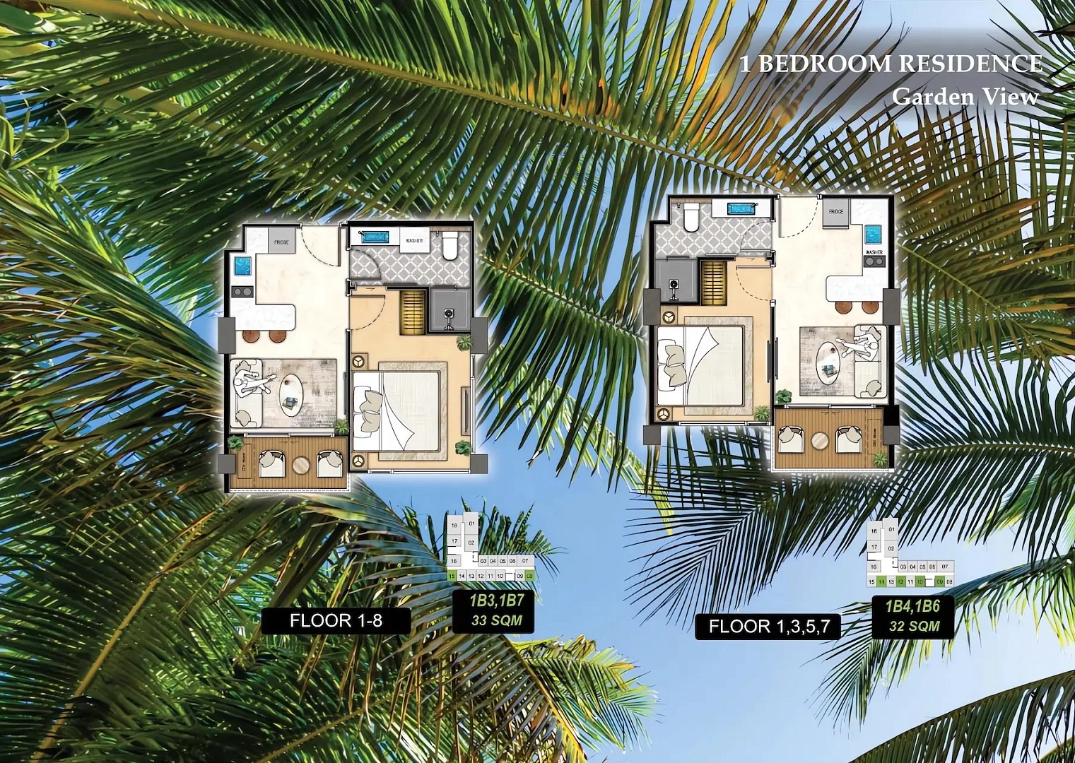 33 кв. м — 2,697,000 бат (корпус 3, Garden View, 1C6, 2-й этаж, номер 224)