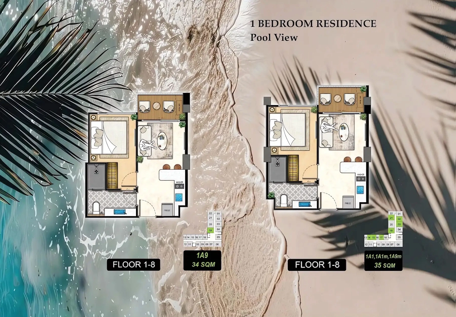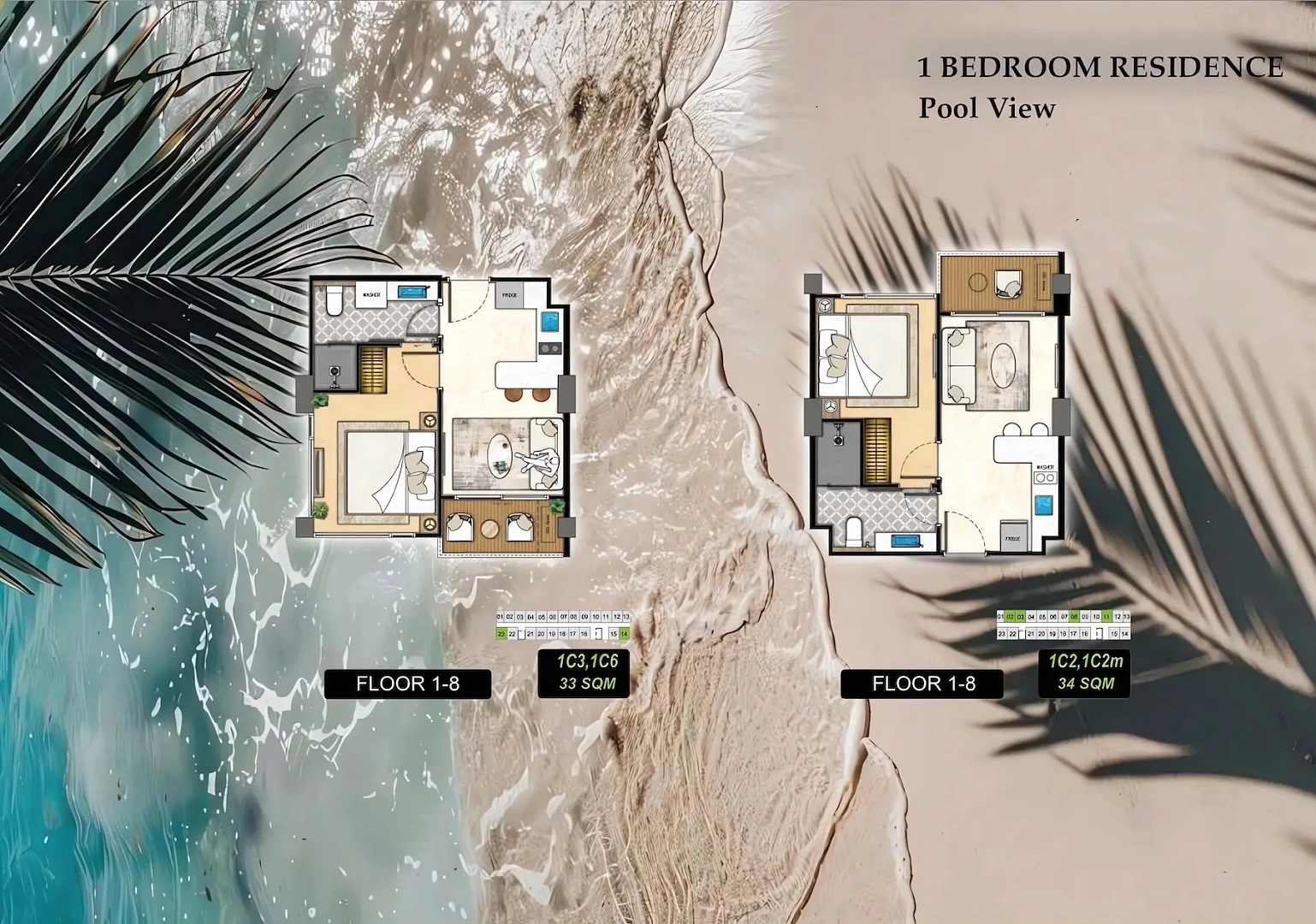 34 кв. м — 3,577,000 бат (корпус 3, Pool View, 1C2, 5-й этаж, номер 511)