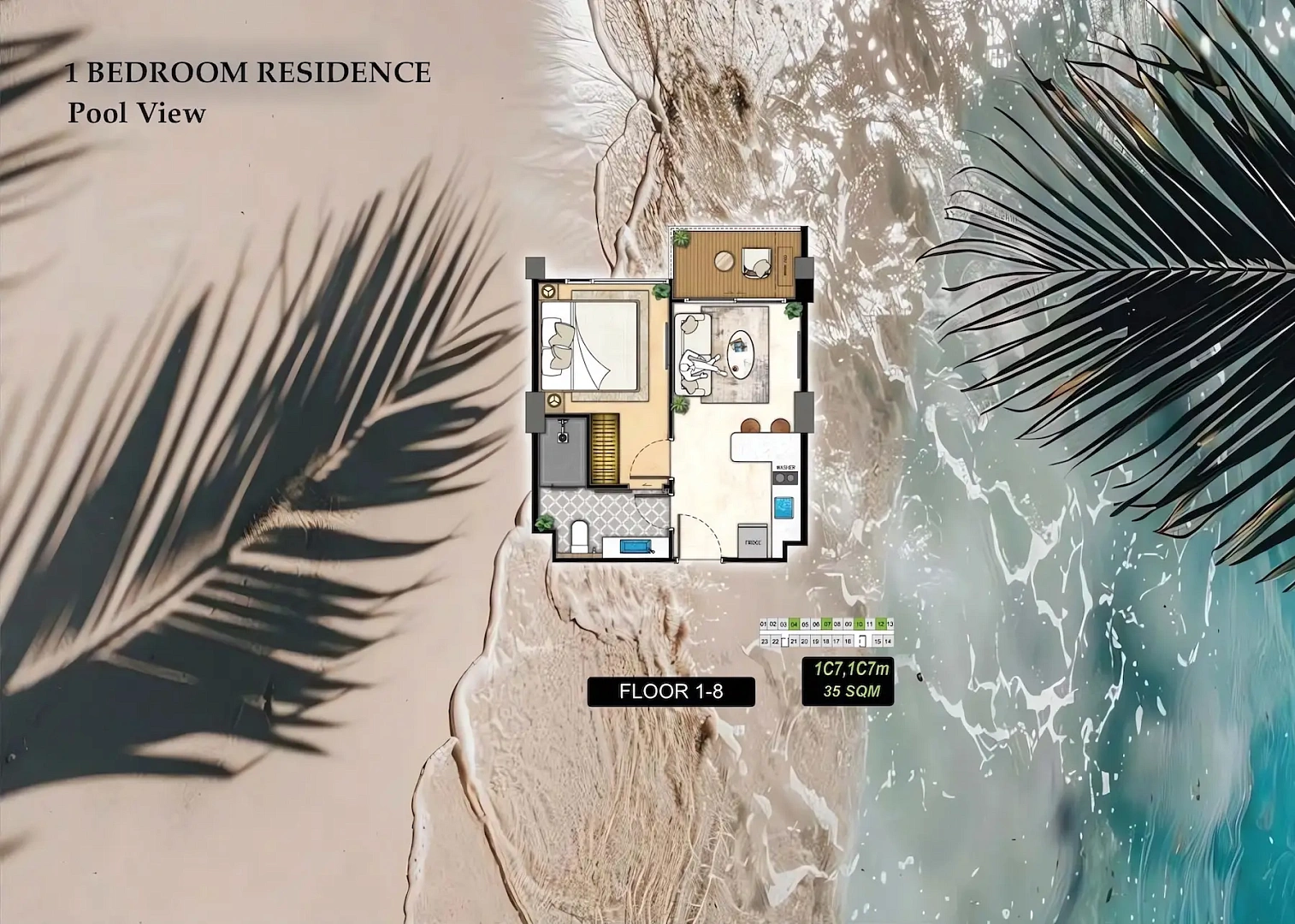 35 кв. м — 3,640,000 бат (корпус 1, Pool View, 1C7, 3-й этаж, номер 312)
