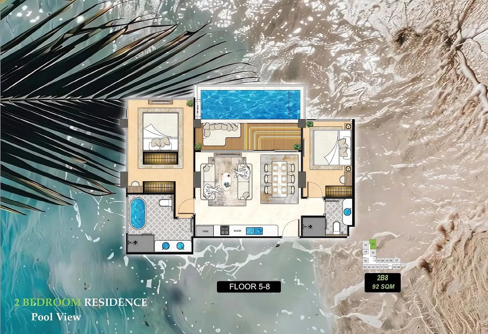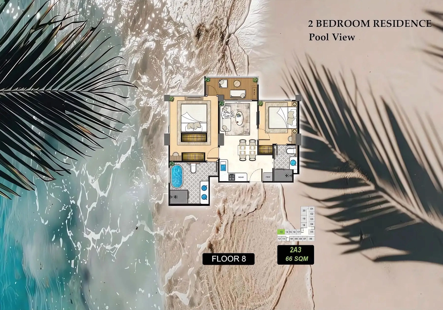 Проект включает 3 элегантных здания с 445 апартаментами, сочетающими современный дизайн и удобства. Расположен в тихом престижном районе с доступом к ресторанам, магазинам и пляжу Джомтьен. Особенности: дизайнерское лобби в стиле отеля, тренажёрный зал с боксёрским рингом, корты для бадминтона и пиклбола, онсен, сауна, гольф-симулятор, 200-метровая беговая дорожка, бассейн с джакузи и плавучими кроватями, зоны отдыха с садами, магазины и кафе. Идеально для отдыха, семьи или инвестиций.