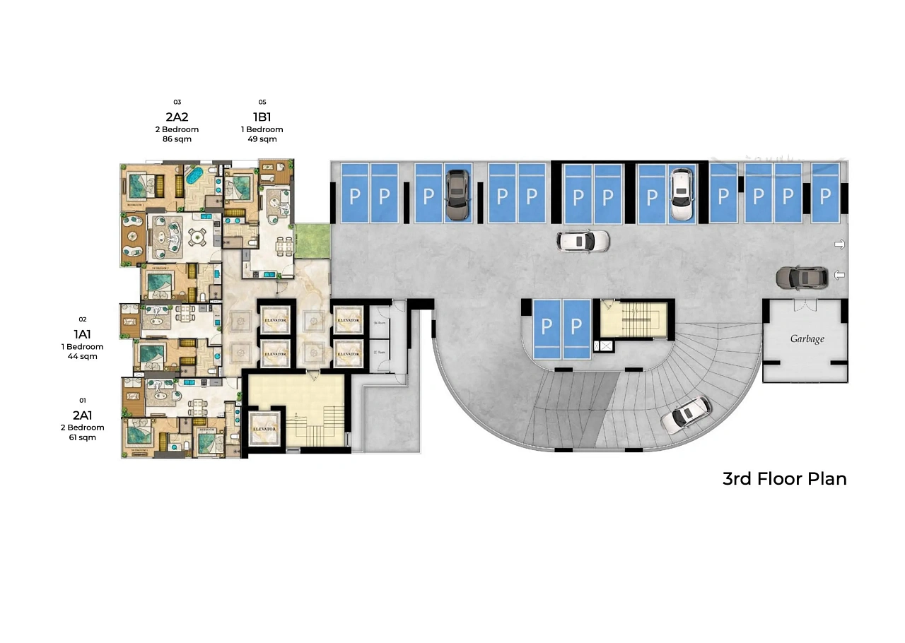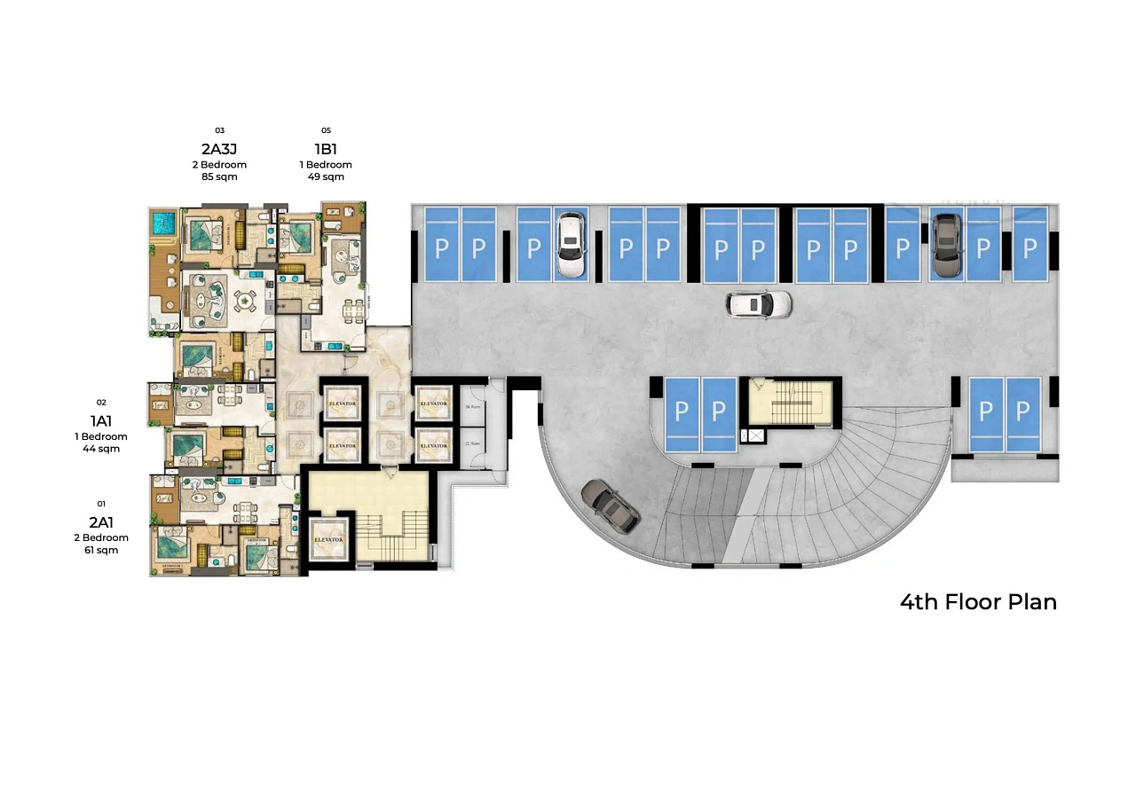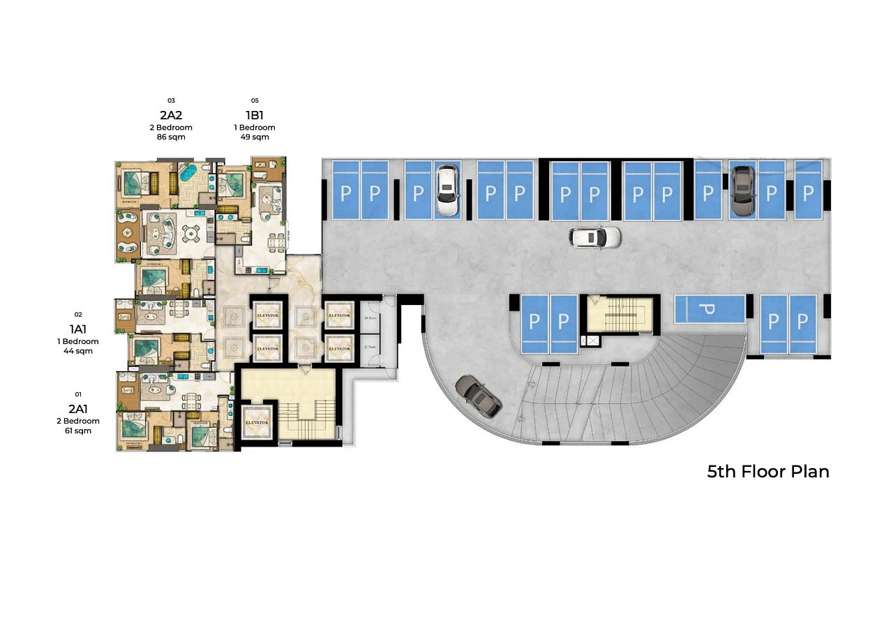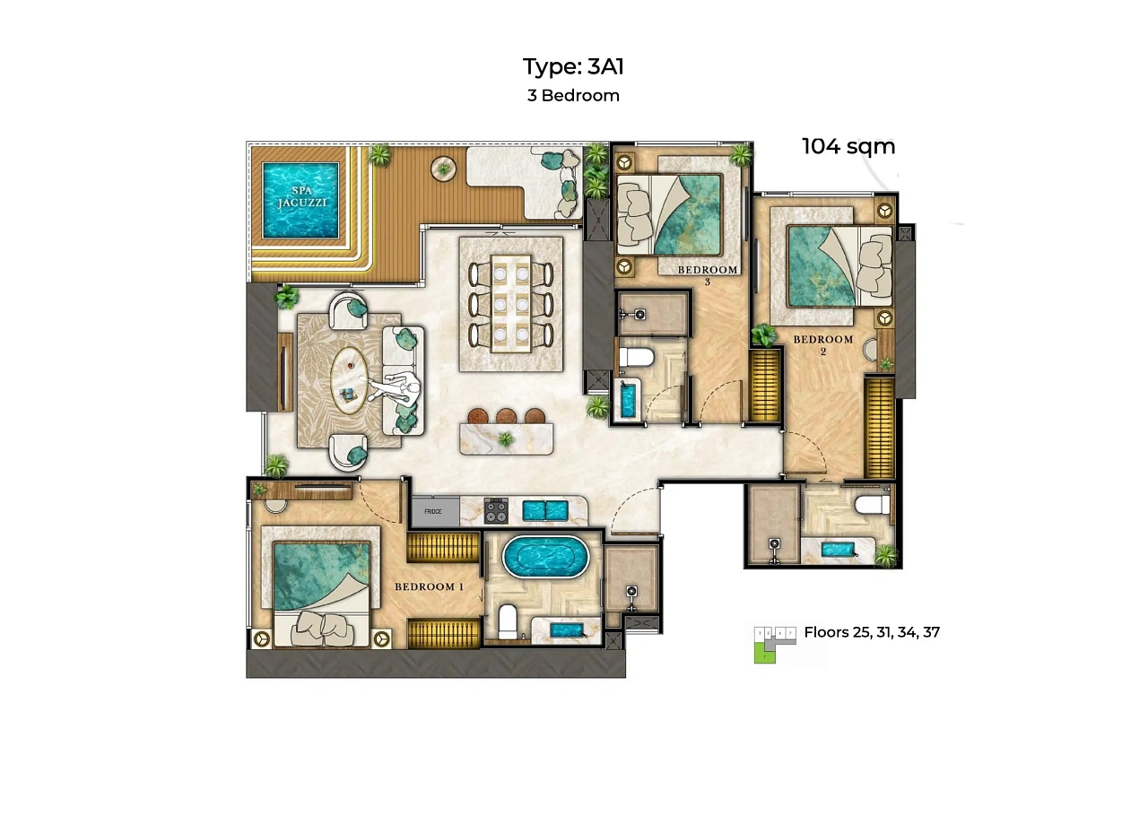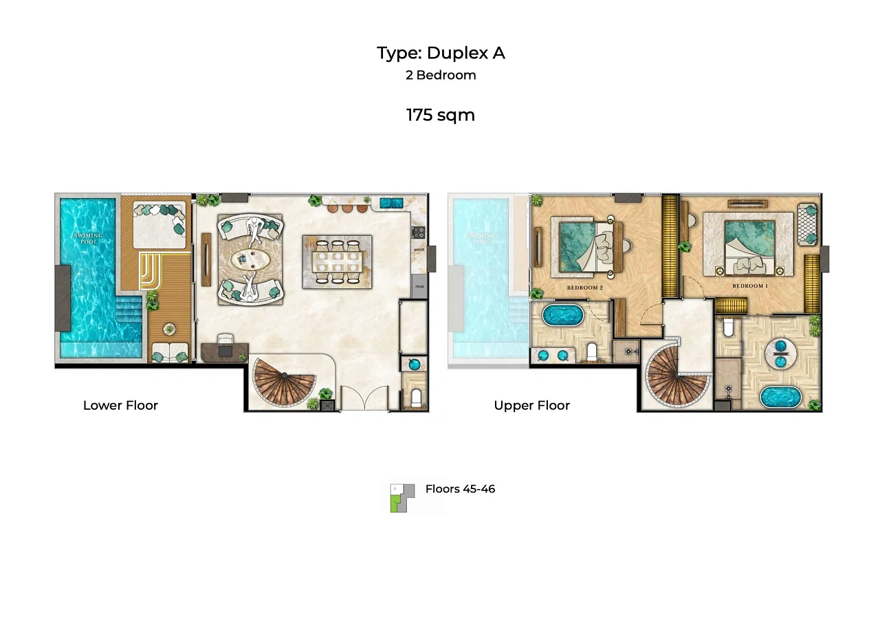 Апартаменты: 298 резиденций (1–3 спальни, дуплексы, пентхаусы от 39 до 295 м²)