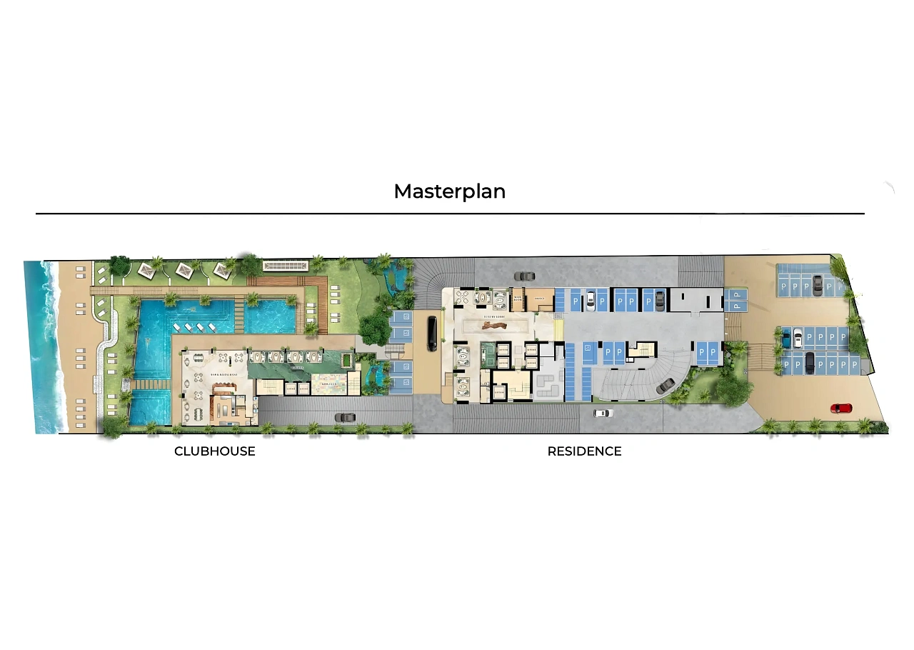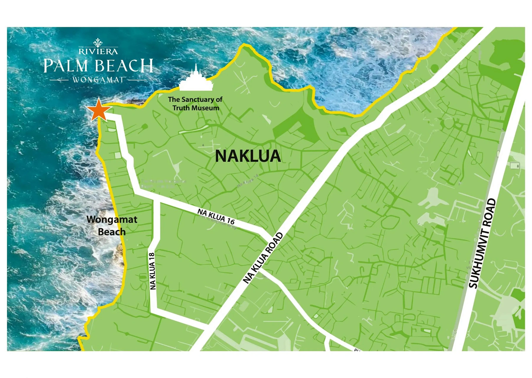 The Riviera Palm Beach — это ультрапремиальный флагманский проект от Riviera Group. Он расположен на последнем свободном участке первой линии элитного пляжа Wongamat. В 47-этажной башне всего 298 резиденций (от 39 до 295 м²), что гарантирует высочайший уровень приватности, шикарные виды на море и Храм Истины, а также отсутствие массового потока туристов. - Далеко ли от этого комплекса до моря и есть ли свой пляж?